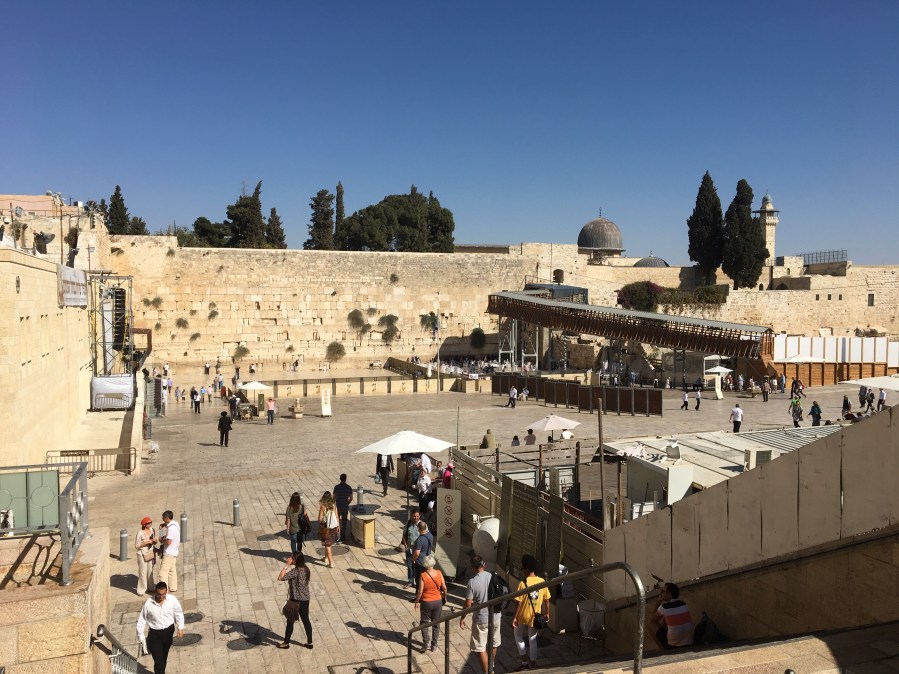 My Hebrew is definitely progressing but it is taking all my energy. So all I do is go out to some services, study and attend classes and do food shopping. So today I decided instead of going to shul, I’d go to the Kotel in the afternoon. I was really mistaken about distances when I rented this place. I am in the middle of things but distances are much longer and the hills. So the Kotel is over a mile and a half away with hills not too steep. It took me close to an hour to walk there partly because I had to walk through the shuk. Since I was here last, they have increased the size of the women’s section considerably. It is almost as large as the men’s side. There is more shade and they have seats on the women’s side. Interestingly there were significantly more women than men praying. So I sat in the shade and watched people. I got to thinking about the Shema. How all is one which means that we are all part of each other. That means Trump is part of me. At first that was a horrific thought but then I started to analyze what that could mean. One way to look at it is that we are all collectively responsible for what happens in our society. However it is mind boggling how I can make a difference. I know that the Rabbi has said we start small, with things we can have some control of. Another way to look at it is that we all have a dark side, the yetzer hara. Always a challenge to channel this instinct into constructive behavior. Enough philosophy. I welcome anyone wanting to comment or discuss this further to send me an email.