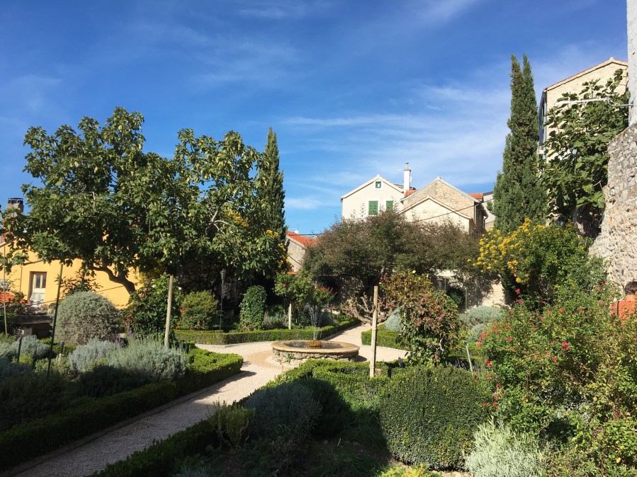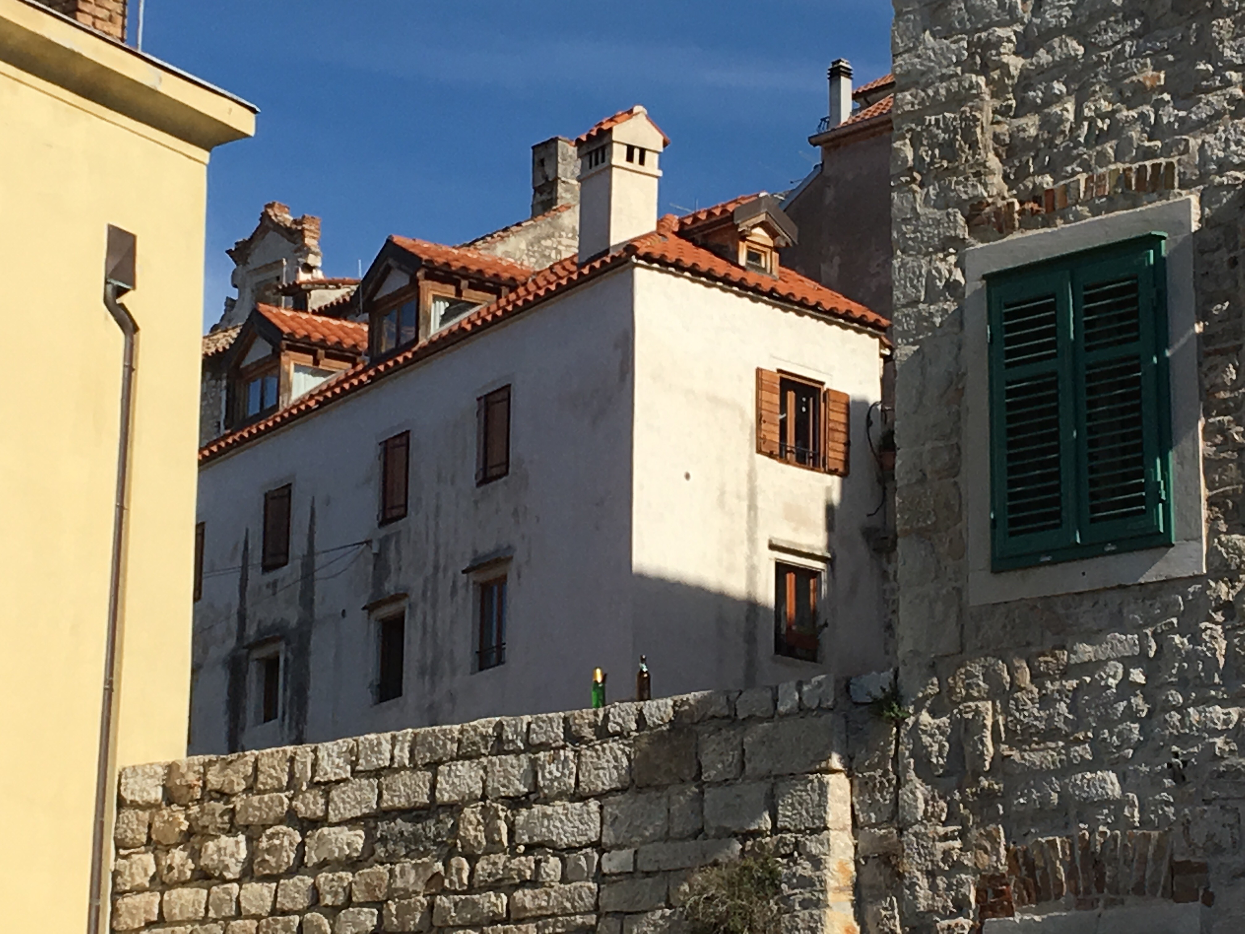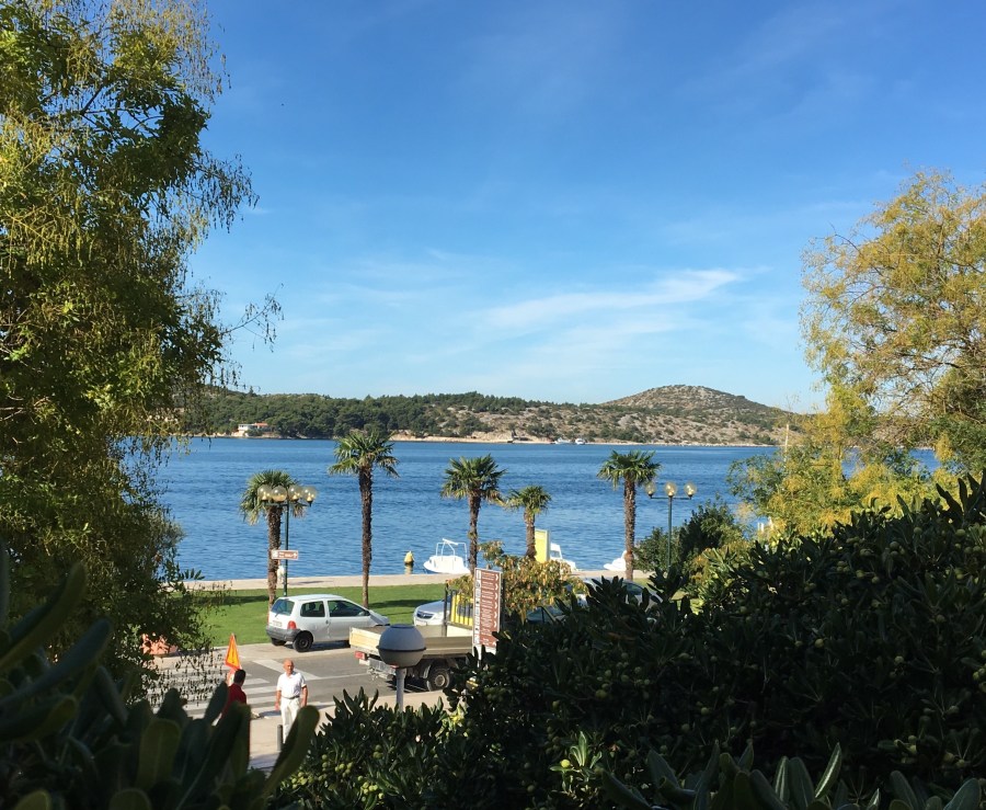 Today we went by bus up the coast to Sibenik, a very cute town surrounded by fortresses that protected the town from the Turkish invasion in the 17th century. The cathedral in town, built in the 15th century, is unique in that it is constructed entirely in stone. I am not much of a cathedral fan but I was impressed with the stonework. It is a UNESCO World Heritage site. In the 1890’s, Sibenik was also the third place in the world to get electric street lights, two days after Niagara Falls. System was designed by Tesla. On the way back to Split we had lunch in a small town in the foothills above the Adriatic.