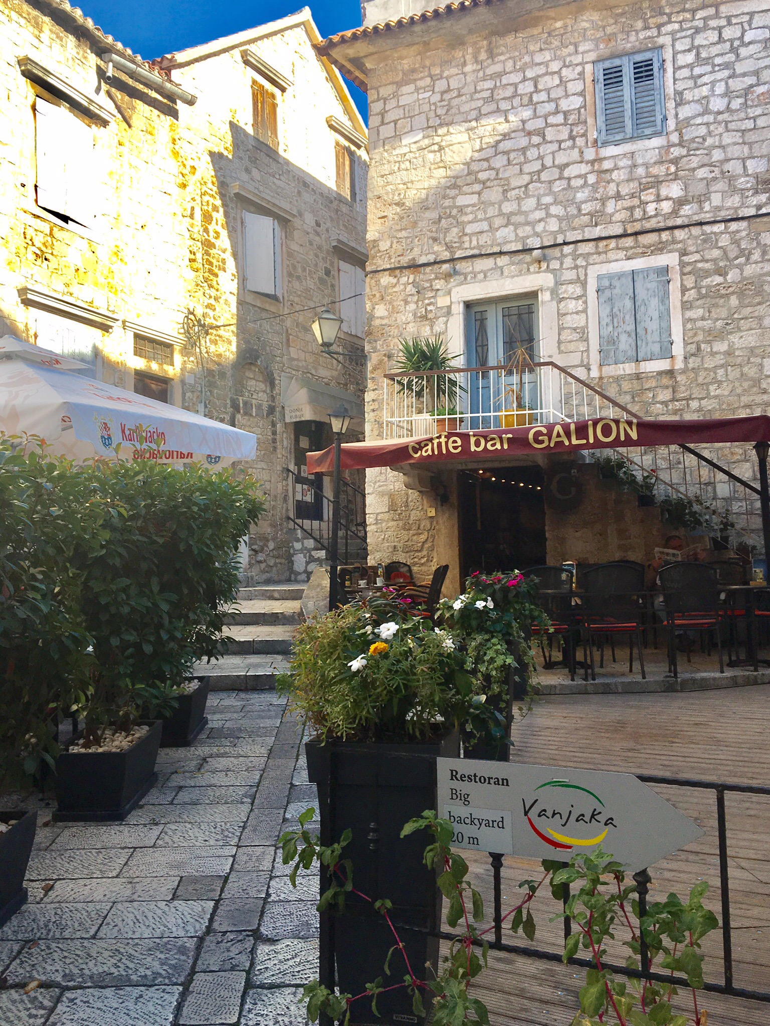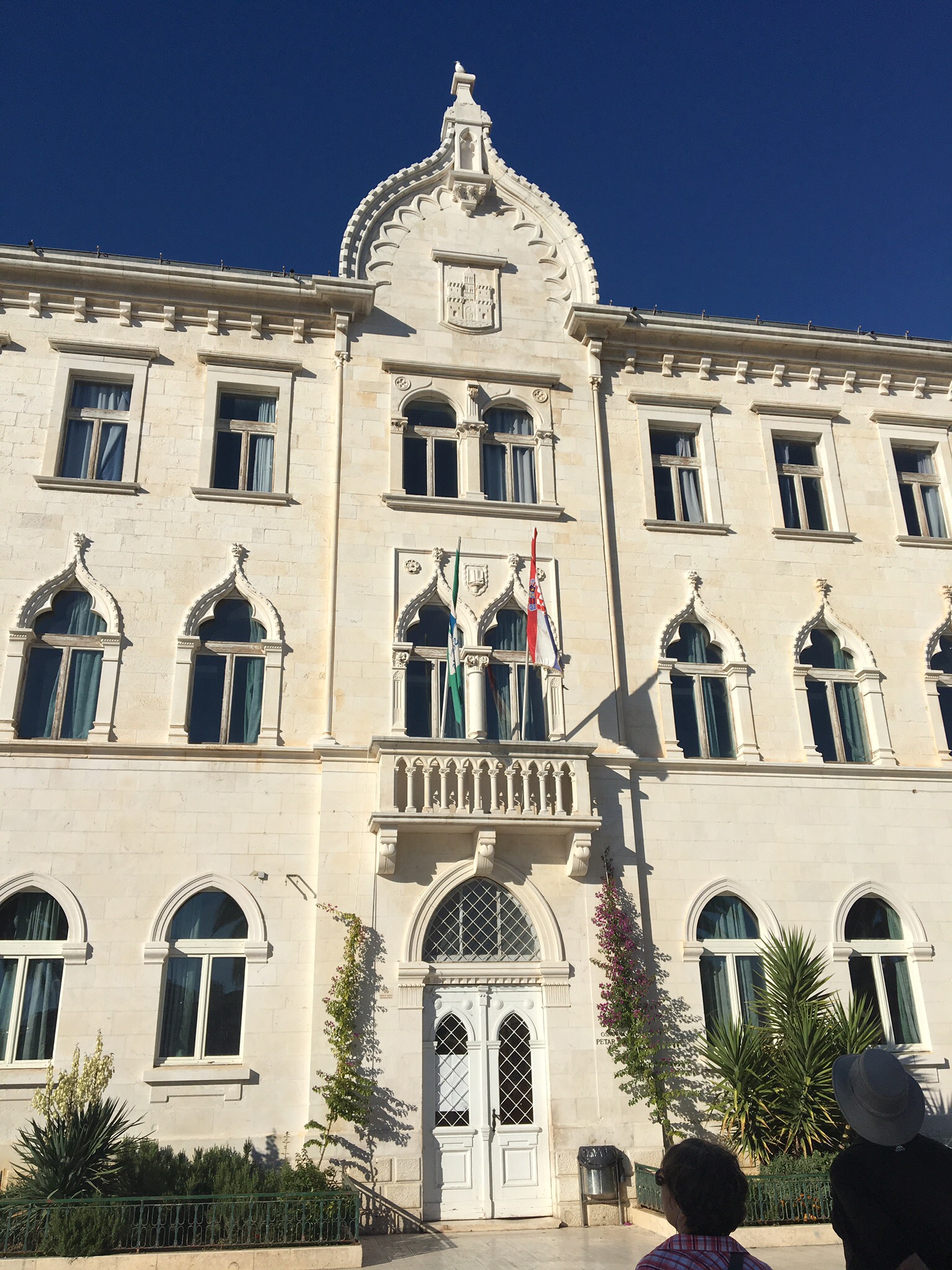 First stop on our boat, Casanova, was the town of Trogir. On the way we got a lecture on history of Croatia. Croatia was part of the Roman Empire until the 5th century, then the Byzantine empire until the 6th and 7th centuries when it was overrun by Slavic tribes, mainly Croats and Avars. Then through the Middle Ages there were fiefdoms and kingdoms mainly aligned with Austria and Hungary. From the 15th through 18th centuries the area was under siege from the Ottoman Empire who was determined to conquer Vienna. There were many fortresses built. The coast along the Adriatic came under the influence of Venice. During the 18th century the area became part of Austria-Hungary. After WW I, with fall of the Austria-Hungarian empire, the neighboring areas eventually formed the country of Yugoslavia. More to come with the next lecture. The pictures are of the town of Trogir which is very picturesque.