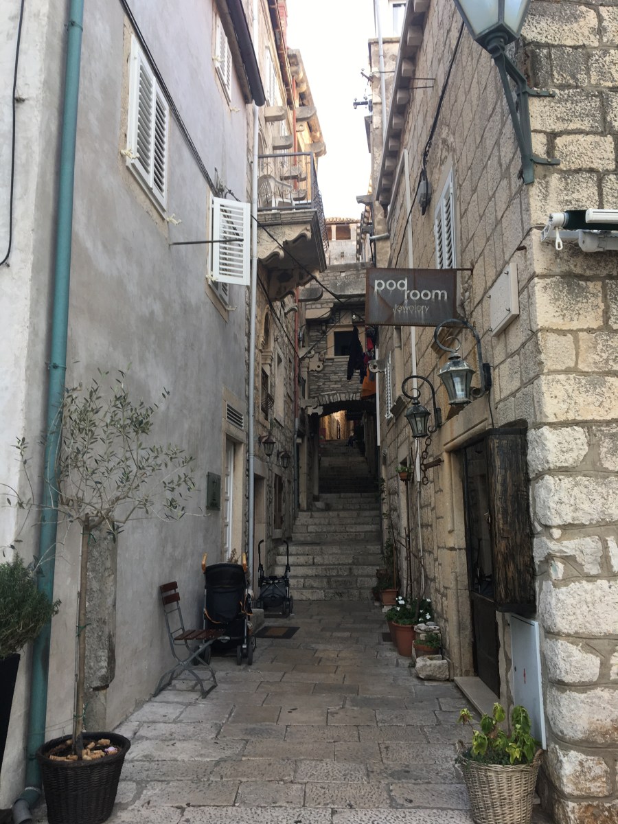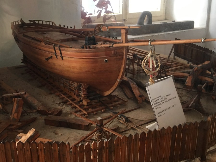 In Korcula we visited a number of small museums, had some gelato and bought a small wooden model sailboat Korcula has a history of shipbuilding. The boat I am on, the Casanova, was built on Korcula.