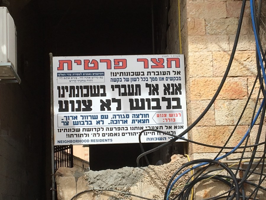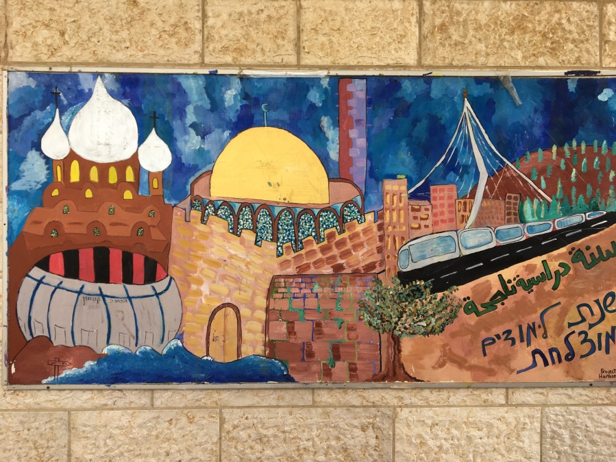 We met with a rabbinic student who works with the Israeli Religious Action Center (IRAC). They are funded in part by the Reform Movement. The state funds construction of synagogues and pays Rabbis only if they are Orthodox. Marriages and divorces are controlled by the Chief Rabbinate which is controlled by the ultra-orthodox. The last three chief rabbis all have the same last name. There are 50 reform congregations in Israel. They are different than the reform movement in the US because they are more innovative. The IRAC plays a major role in taking legal action against the state and the chief rabbinate to support the religious rights of all. They are actively involved with Women of the Wall. After this talk we visited the Hand in Hand school. There are 6 such schools in Israel and they are building two more. Hand in Hand was founded by Lee Gordon, a Portland resident. Hand in Hand is a bilingual school with Israeli Jewish and Israeli Palestinian students. It is a K-12. It’s mission is to build partnership, coexistence, and equality between the Jewish and Arab citizens of Israel. After this we walked through the Nachlaot area which has been inhabited by Haredi for over 150 years. We then lunched and looked around the Mahane Jehudah market. After lunch three of us separated from the group and visited the Mt. Hertzl National Cemetery. I like to visit the grave of Hannah Senesh. She was a young parashooter during WW II who jumped into Germany to help resistance fighters, was captured and killed by the Germans. She was a brilliant poet and wrote the words to the song Elli, Elli. I didn’t want to go to Yad Vashem. I have been there twice on previous visits to Israel. The first three pictures are from the school. The next two from Nachlalot. The sign says women must dress conservatively so as not to desecrate their holy space. The last picture is Hannah Senesh’s grave site.