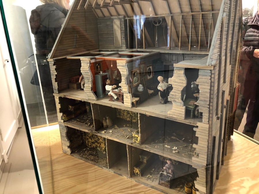 The next stop was the old town of Berlin. These houses are built entirely of wood so they’ve had many fires. They keep rebuilding. The area is now a UNESCO heritage site so they have to build in the same style as the houses were built in the 1600s. Because of the fire hazard, the homes have no source of heat or means of cooking. They built a few houses of stone that were used as meeting places and cooking space. The houses are built on fairly loose sand so they have a definite tilt to them and the doors aren’t even straight. With climate change this whole area can be flooded. The houses now have stores and businesses in them.