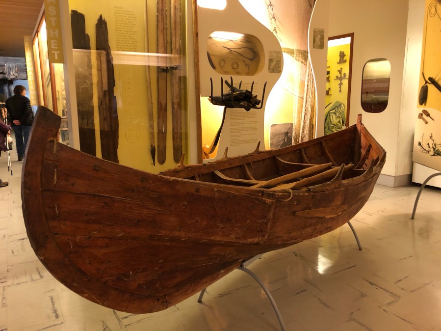 In Tromsø, we went to the University Museum where we saw an excellent exhibit on the Sámi people. These people are known as Lapps or Laplanders. They refer to themselves as Sámi. It is believed that they came to Norway at least 4000 years ago from Russia at the same time or before the Vikings came up from Europe. They were primarily reindeer herders and nomadic. Norwegians treated them in somewhat the same way we have treated Native Americans and the Canadians have treated the first nation people. It is not a pretty thing. In order to integrate them into Norwegian society, the children were sent to boarding schools. What is different is Norwegians realized that they had made a mistake. Today the Sami language is recognized as an official language. The Sami people have their own parliament which acts as an advisor to the Norwegian Parliament. Only Sami can own reindeer. There are other ways in which the Sami have been able to achieve equality within the Norwegian culture.