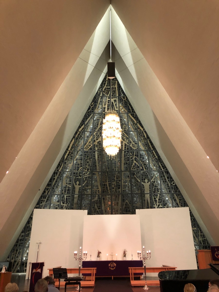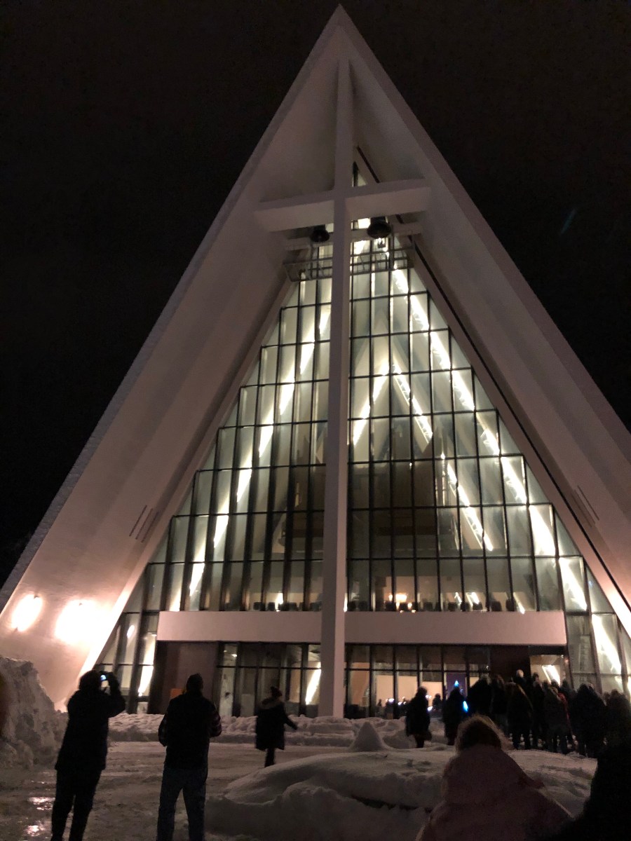 In Tromsø, we were taken to the Arctic Cathedral at midnight for a concert. The performers were a soprano, cellist and organ/piano player. The music was mostly folk songs from Scandinavia and it was delightful.
