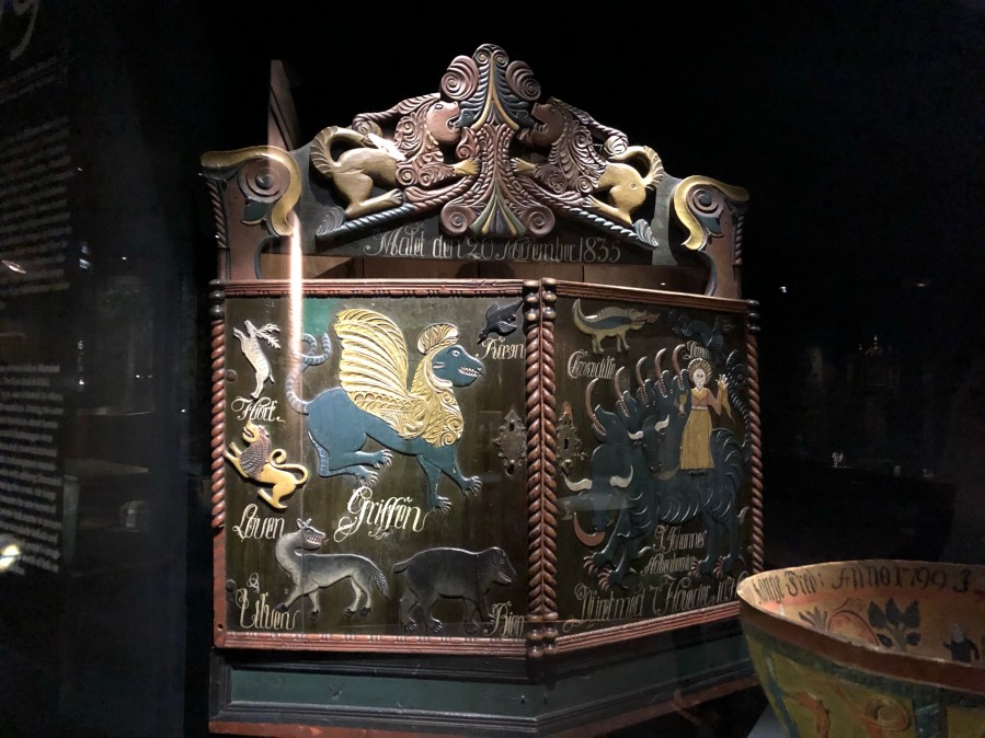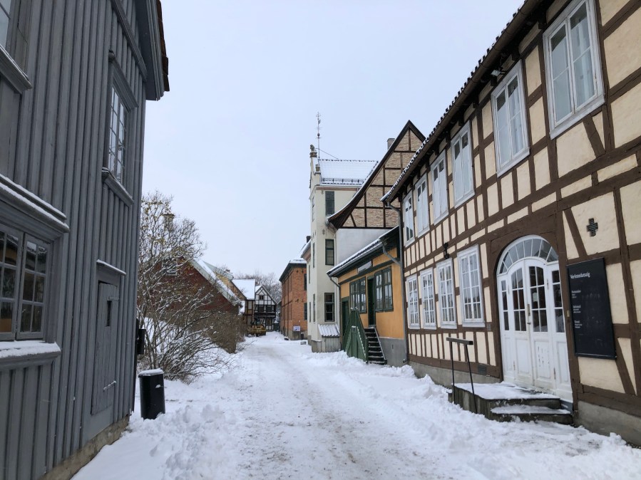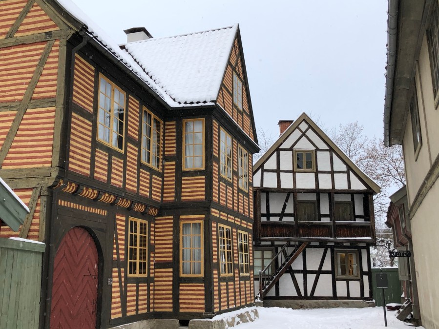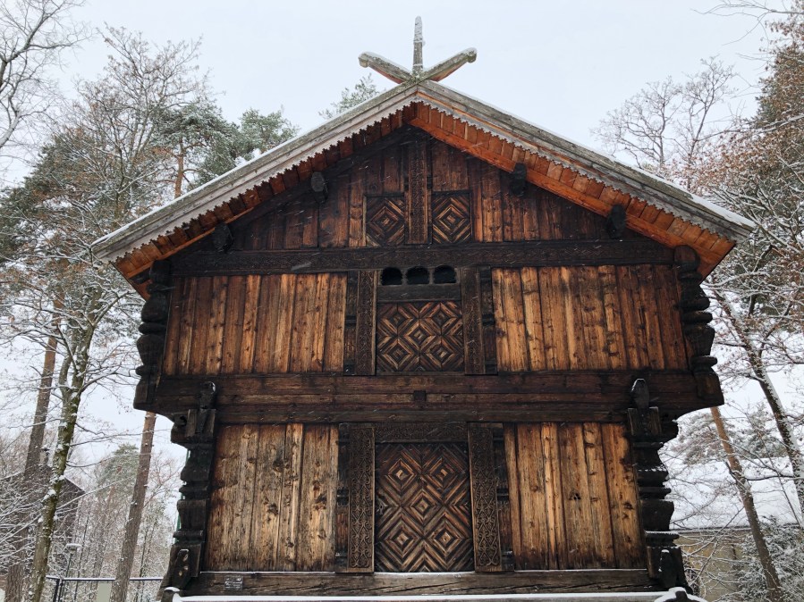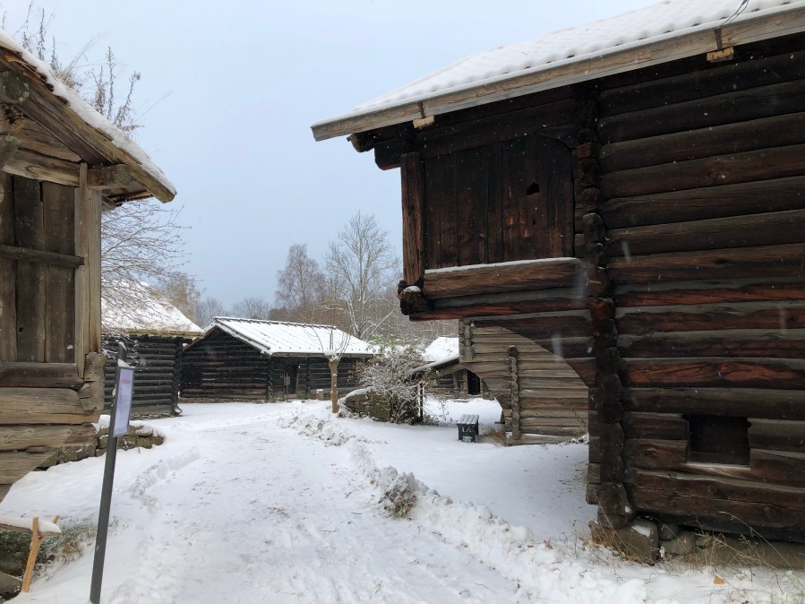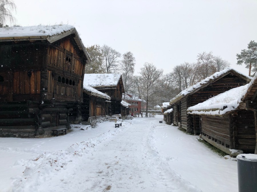 Our first day in Oslo we decided to explore on our own. So first we had to master the rapid transit system. First of all it is an excellent system and really not that difficult to use. We were able to buy a pass for our entire stay so we didn’t have to keep buying or paying each time we used rapid transit. With the help of Google maps and very friendly Norwegians we had no trouble with the system. We also had to overcome the fact that it was snowing and had been snowing so we were trudging through 2 to3 inches of snow. Our first adventure was the folk museum which is also called the open air museum. There is a hall that has artifacts from older times including clothing, guns, etc. Most of the museum however was outside consisting of homes and other structures that were brought to the museum site and reconstructed. One of the buildings was a stave church. It was on top of the hill so on my way down I had to do a controlled slide. The snow did make the buildings very pretty though. There are only 28 of these churches remaining in Norway when there used to be thousands. We saw a number of these churches when we were on the cruise. They are made out of wood so many have burned down. Because Norway was a very poor country until the recent discovery of gas and oil off the coast, people didn’t have a lot of money to build churches so wood was all that they used. Now Norway is a rich country. It is amazing to see the amount of construction going on in Oslo. They are rebuilding a number of the museums here. Unfortunately one of them is the National Museum which is currently closed and we were unable to go to it.