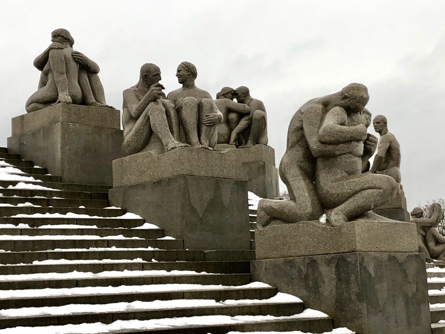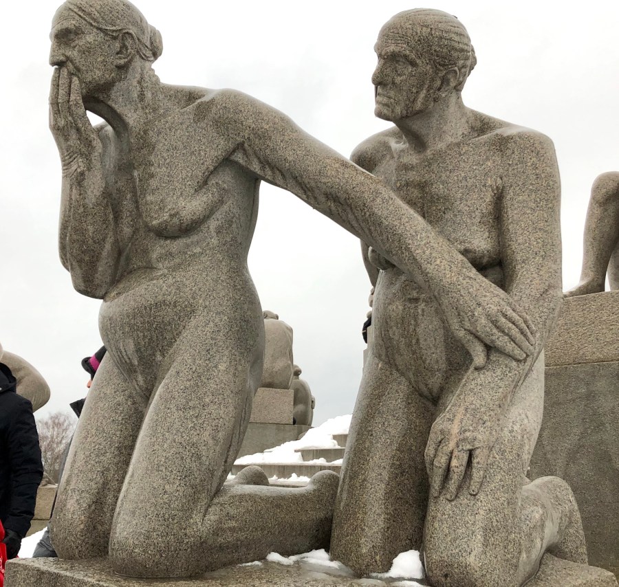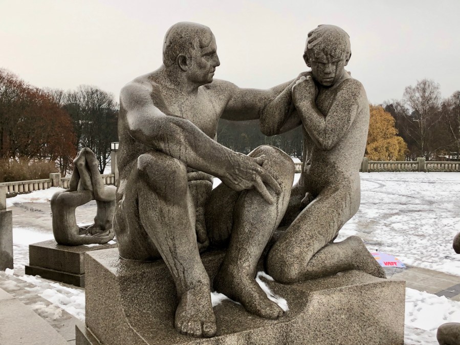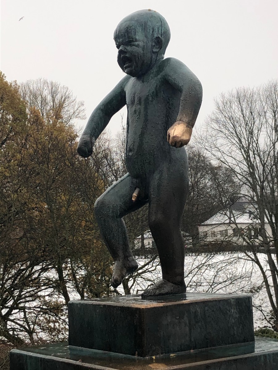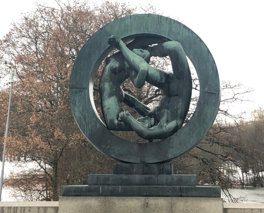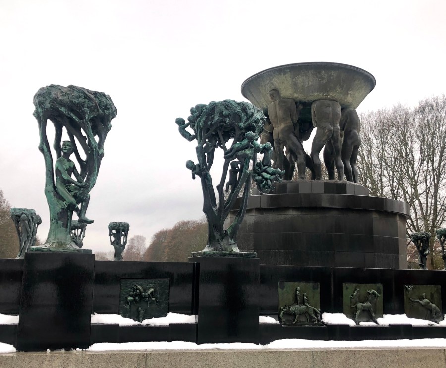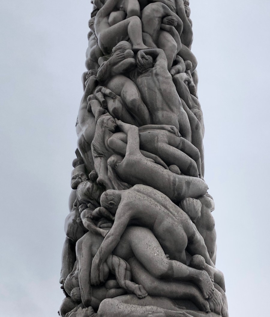 Our next stop was Vigeland Park which is an extraordinary open air showcase of work by Norway’s best loved sculptor Gustaf Vigeland. I was really impressed with his work. He also was the designer of the Nobel peace prize medal. In his works, tried to depict the stages of life from infancy through adulthood and old age. However death is not the end, the subject matter is cyclical. His father was very religious but also an alcoholic. This difficult relation did have an impact on Vigeland’s art. He also was greatly influenced by Rodin.