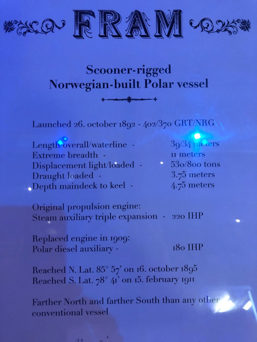 Our third stop was at the Polarship Fram museum. This was a stunning museum that is dedicated to the polar exploration by the ship called Fram. The actual ship is inside the museum. By using visual effects on the wall, you actually feel like you’re on the boat. You were also able to go down below deck and see the living quarters. They have the galley set up for the Christmas dinner that was served aboard. One of the pictures is the menu for that dinner. The ship was used by Roald Amundsen in his quest to beat Robert Scott to the south pole. Fortunately he was the first one to the South Pole. Unfortunately Robert Scott’s attempt ended in tragedy. Amundsen had superior equipment, dogs, etc.