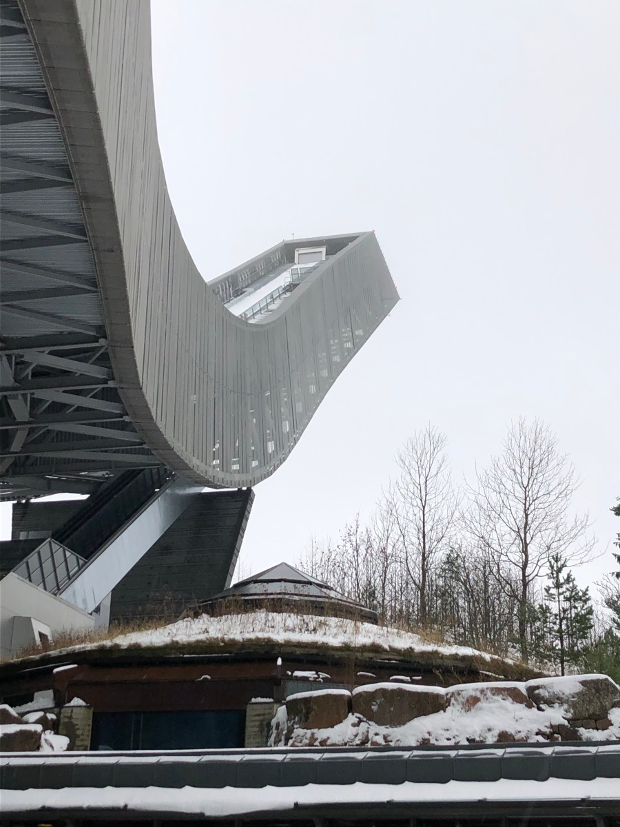 Today we decided to take a guided tour. We went to four different locations. First the bus drove around the central area with a guide giving us some information about Oslo. It turns out that Norway was not a fully independent country until 1905. It had a constitution signed in 1814 but was forced into a union with Sweden which lasted until 1905. our first stop on the tour was to a ski jump and Nordic competition area. I have never been near an actual Olympic level Skijump. I have to admit it is very impressive. Being up close to it makes me wonder what kind of crazy people actually go down these things. I’m going to have to apologize for most of my pictures. Either we were outside where the weather was dismal, gray or we were inside and the lighting wasn’t that great.