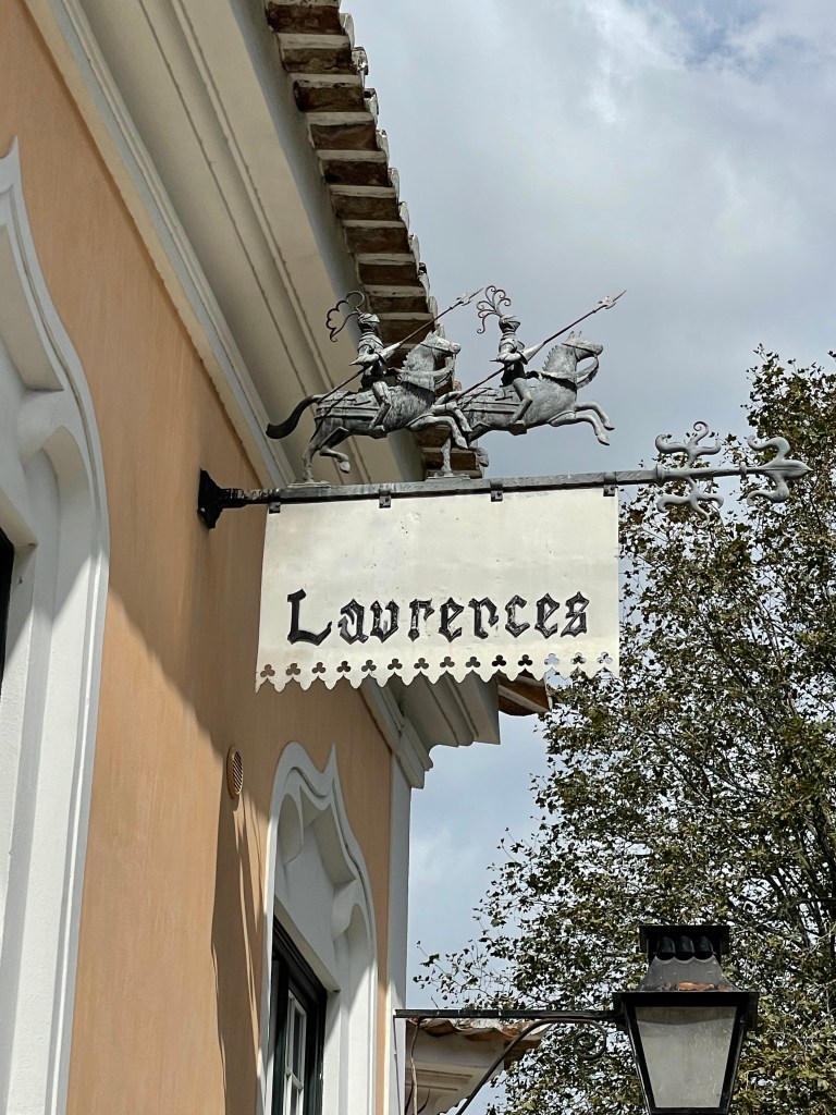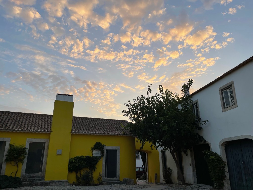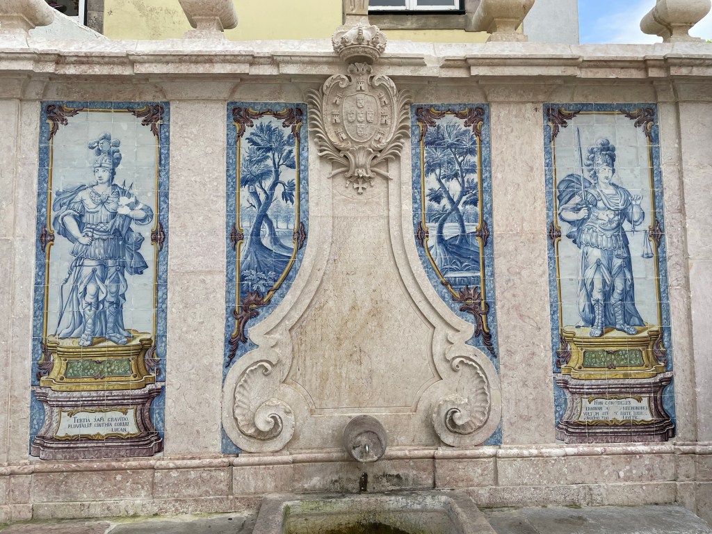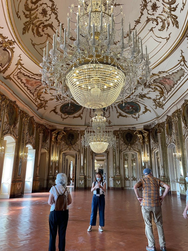After a lecture on the history of Portugal, we took a bus ride up the coast to the picturesque town of Sintra. Sintra is nestled into a hillside. Unfortunately it was very touristy. After lunch, we went to the palace of Queluz which is situated outside of Lisbon. The palace was the official residency of the Portuguese royal family throughout the 18 century. The architectural design is an eclectic mix of baroque, rococo and neo classical, while the gardens are inspired by the French styles of that period. There is also some murals and other things that had a definite Chinese influence. After returning to the hotel, Reggie and I had a delightful swim in the pool and then a very nice hot shower. Dinner was an appetizer of lox with pickled onions, sea bream on asparagus risotto and a wonderful lemon tart.