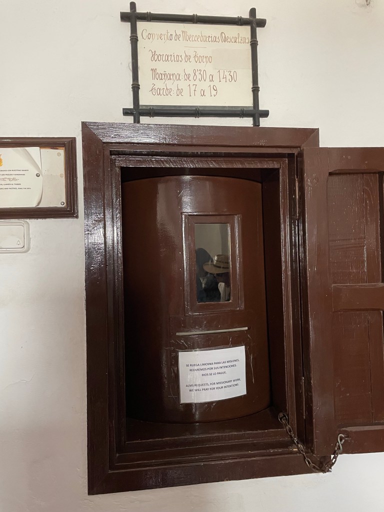 We bought some cookies at this cloistered convent. The nun can’t really have contact with you so she is behind this rotating thing. You send in the money and she sends out the cookies.