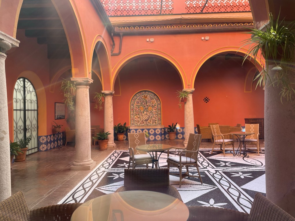 There is this beautiful hotel in the Square. Here are two pictures of the interior and one picture of the view from the terrace of the hotel.