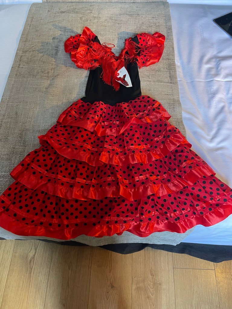 We left Seville and started on our adventure through the mountains of southern Spain and visited the white villages of Andalucia. Before I start describing these villages, I’m going to show you a picture of the dress I bought for my granddaughter, Rachel.