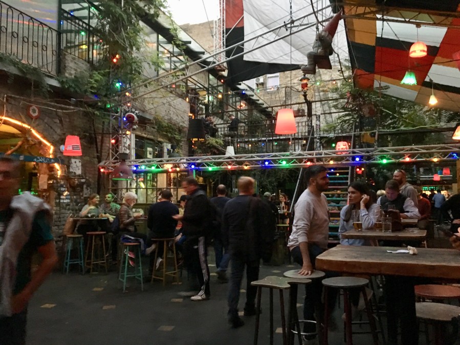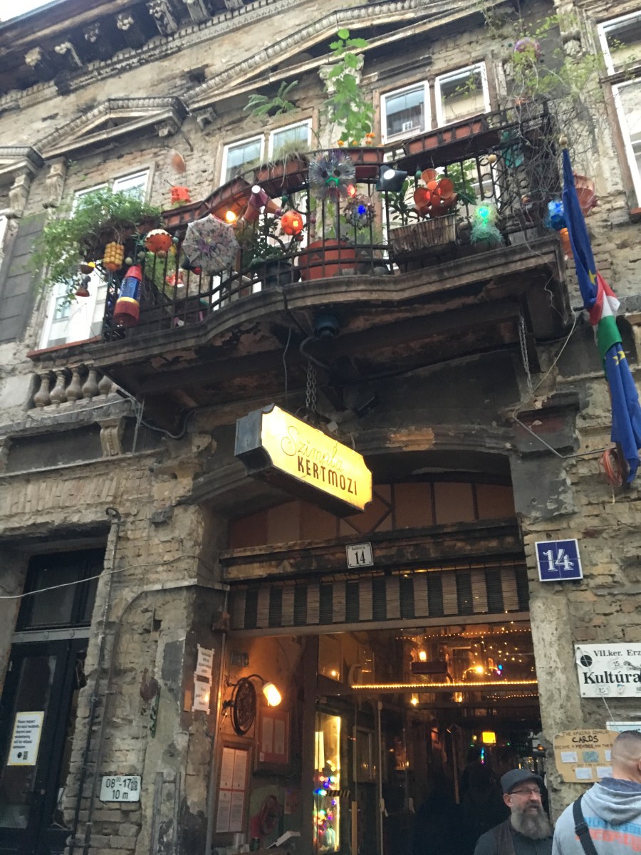 In the evening on the way to dinner we were taken to a ruin bar. A number of older structures were going to be demolished but some enterprising people talked the authorities into letting them maintain the buildings and use them for bars. We had a glass of the Hungarian equivalent of plum schnapps.