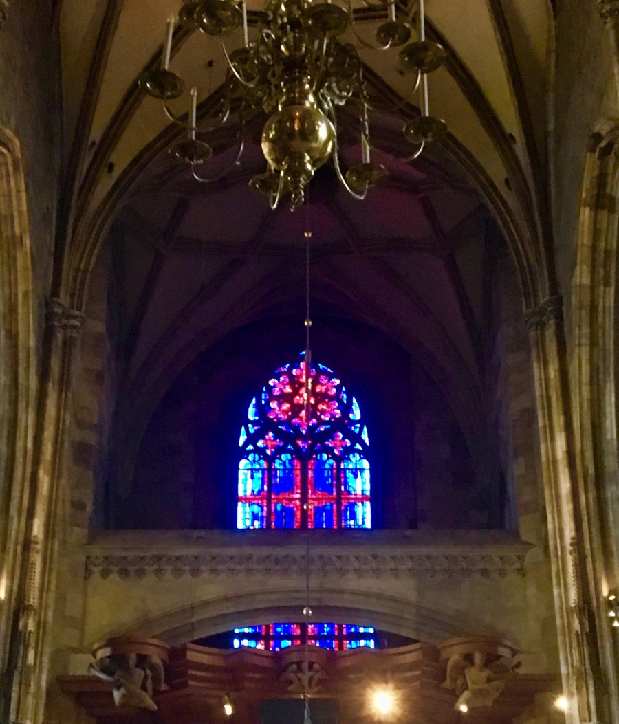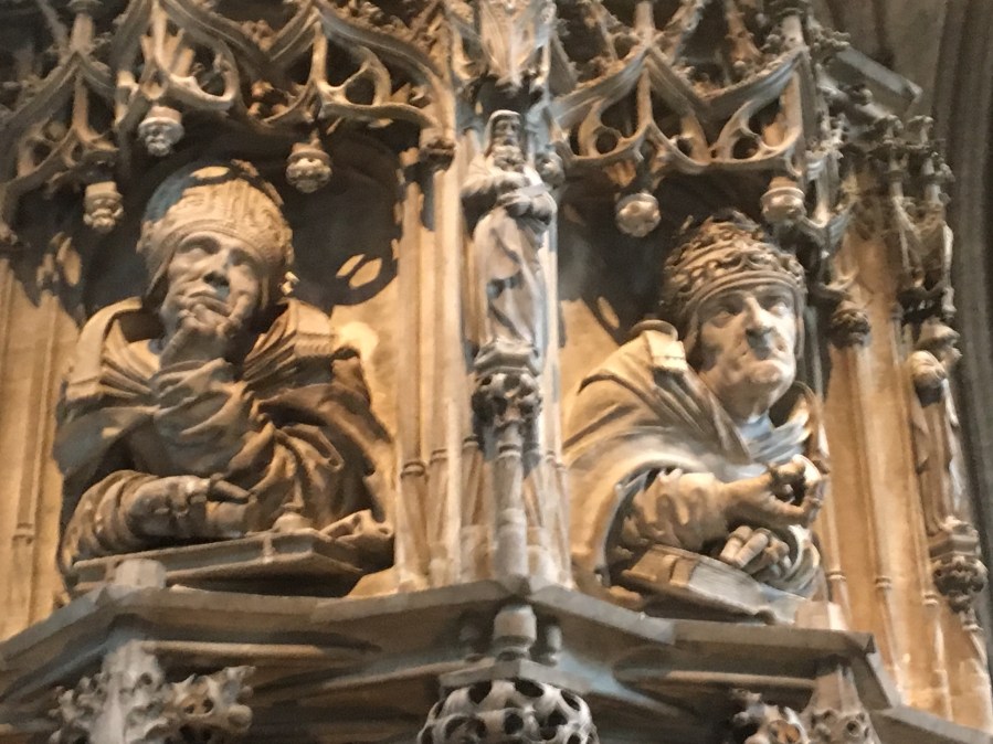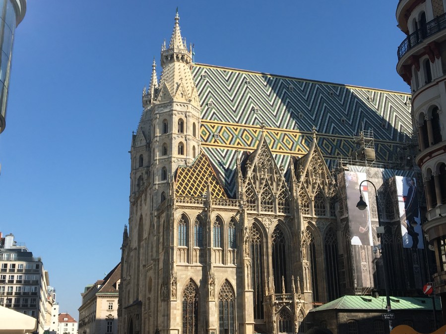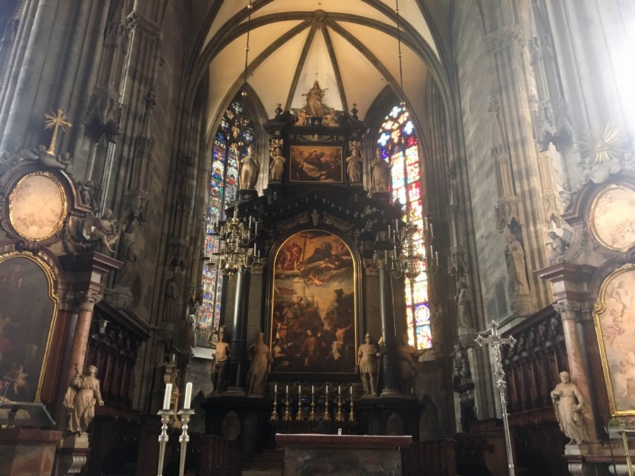 Our first stop was St. Stephens Cathedral in the Old Town. The Cathedral was completed in 1160 CE and was built in the romanesque style. It is known for its tile roof. It had some pretty funny figures in the church.