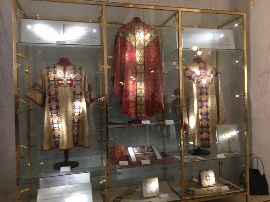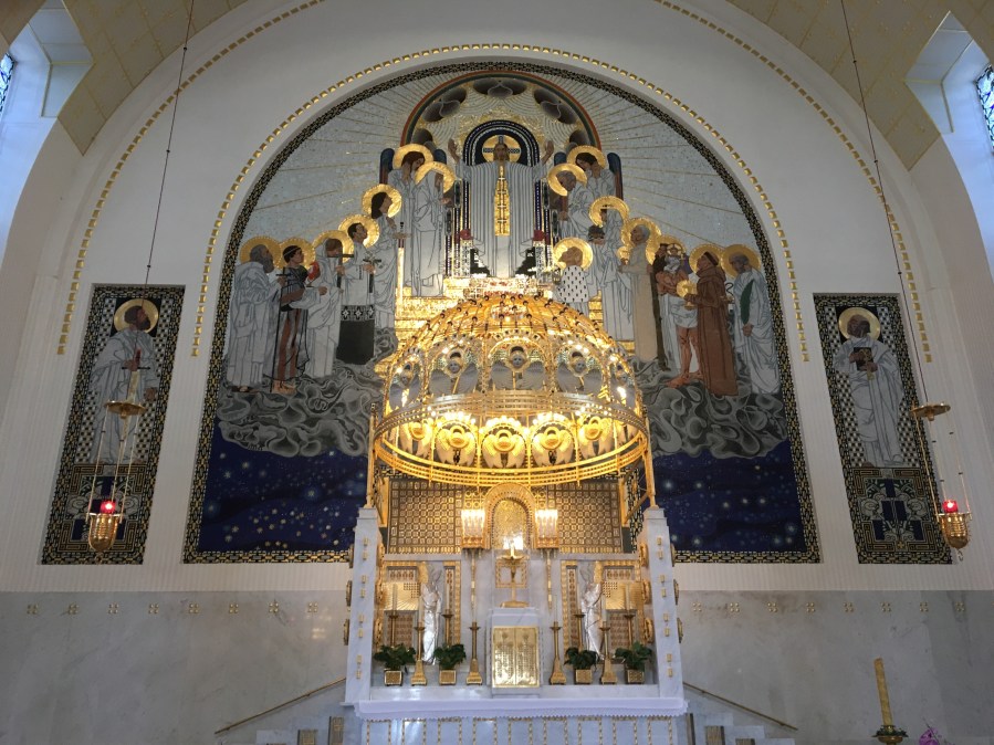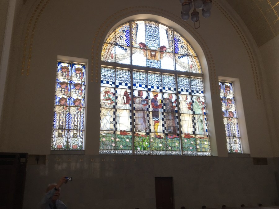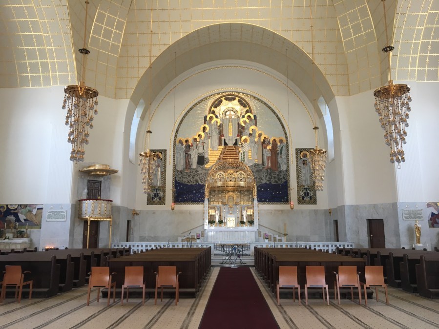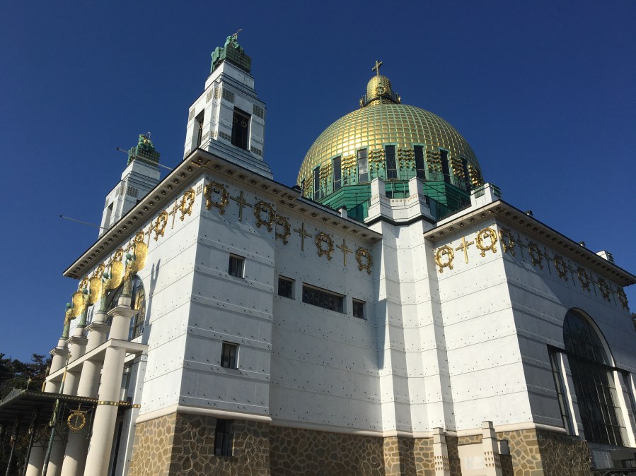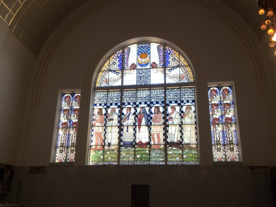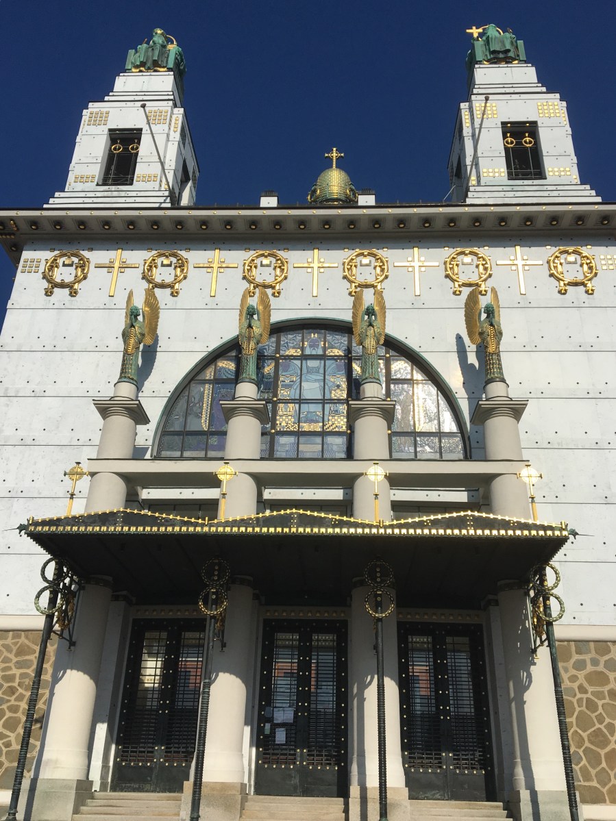 We started the day with a music lecture given by Julia and Walter Ayer. He is the principal flutist in the Vienna Orchestra. They played some delightful duets by Mozart and others. We then went to the Jugendsil Steinhof Church, an example of arte nouveau, built on the grounds of a huge mental health facility. Unfortunately during WWII, the Nazis took advantage of this to send over 8000 to the gas chambers. Today it is still mainly a facility for the mentally ill. The church is very unique. Here are some pictures.