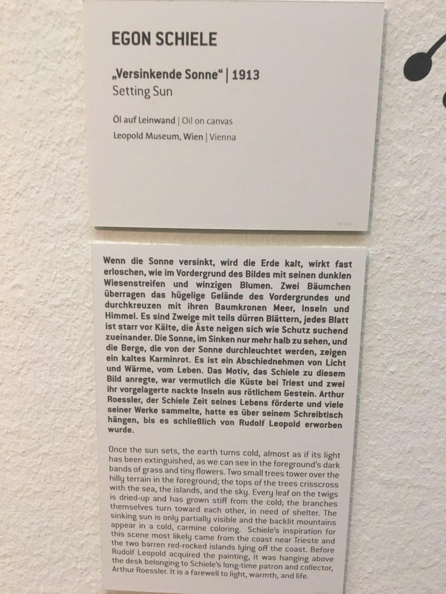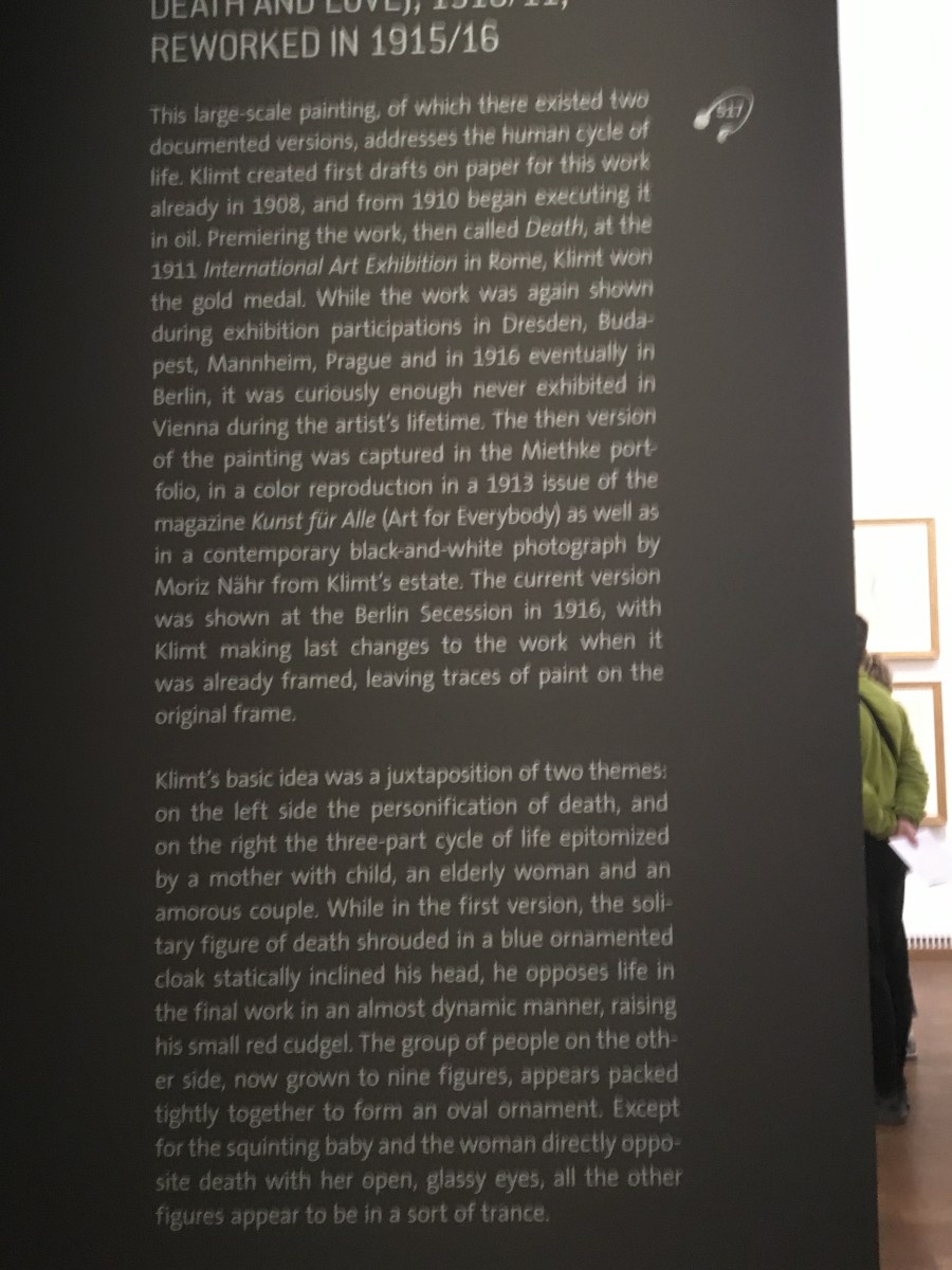 After lunch we went to the Leopold Museum to see more Klimt and others. One other artist was Schiele who as gas as I was concerned was deeply disturbed as a young man. I did like some of his landscapes. Again I have tried to include pictures of the descriptions of the paintings. There are also pictures of the museum itself. The last is a photo of Klimt.