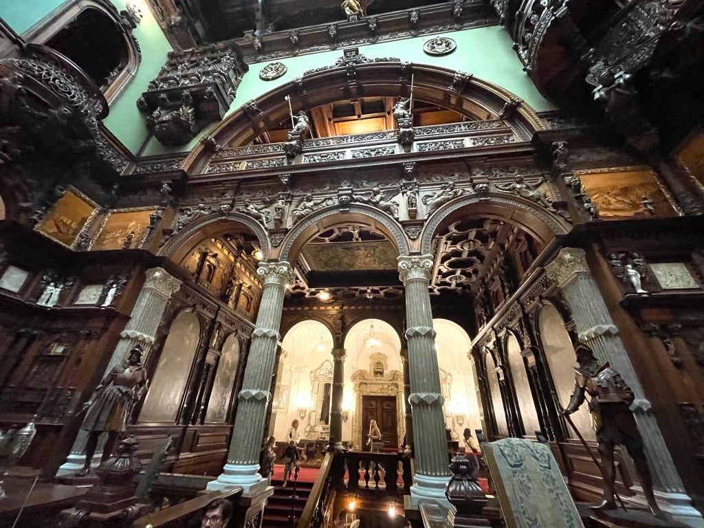 Peles castle is the former summer residence of King Carol I and Queen Elisabeth. It was a place for political decisions and an important European cultural center at the time. The castle was the first building in Romania to have central heating, electrical system, central vacuum cleaner, ducted air heating system, and electric elevator. Peles Castle has extraordinary value as a monument of European architecture, typical for late 19th and early 20th century. The woodwork in the interior is just unbelievable.