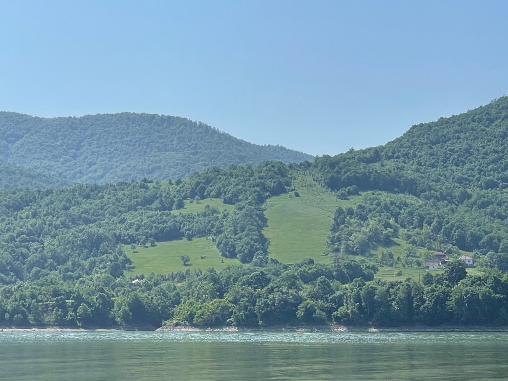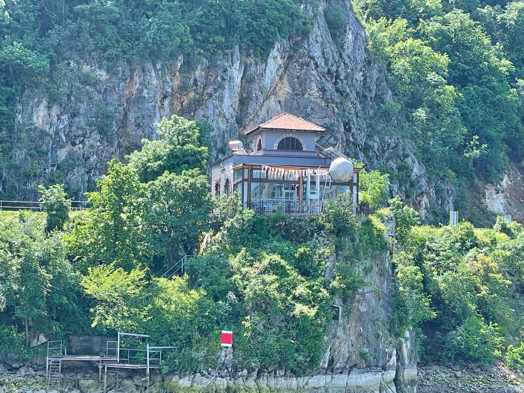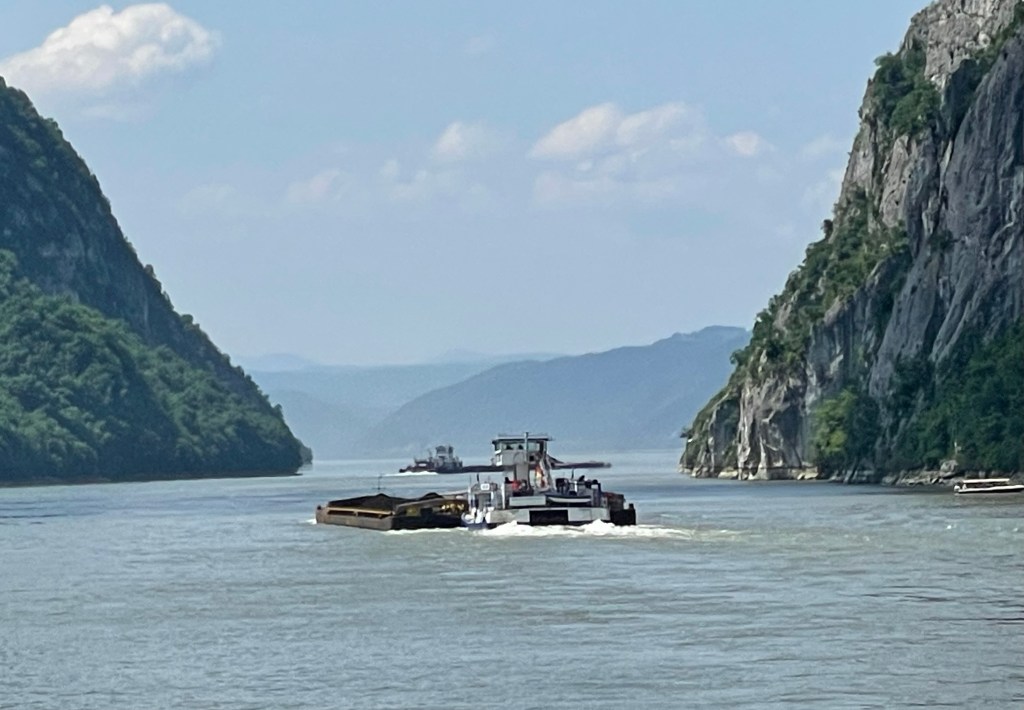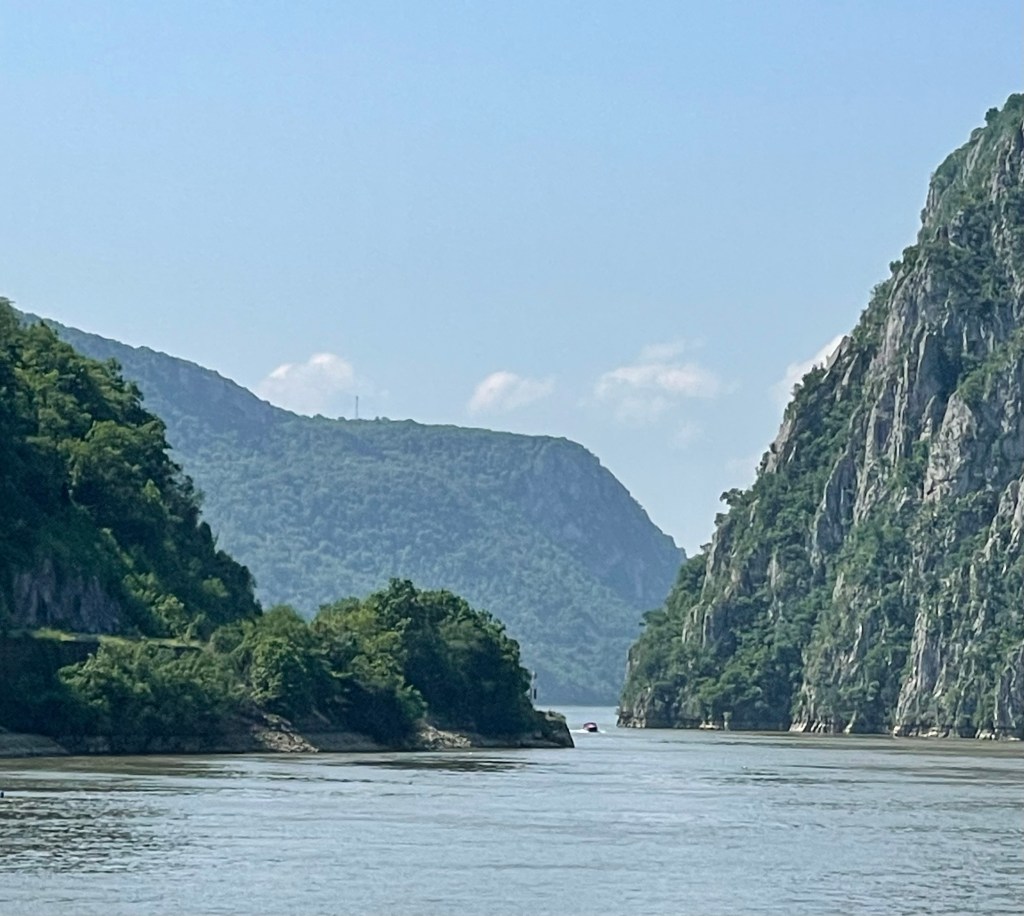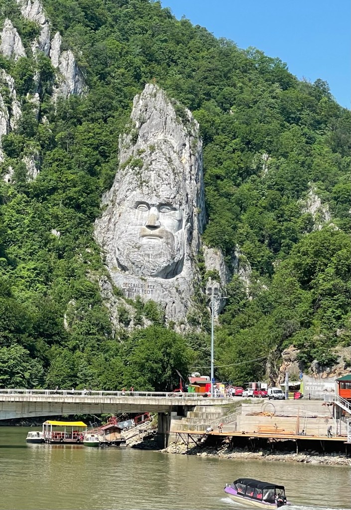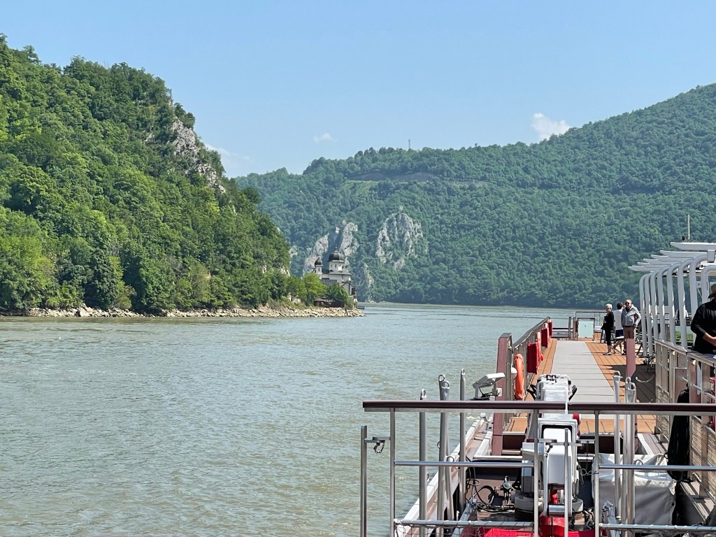 I woke up Saturday morning to find VIKING VIDAR was in the Djerdap I locks. It actually took hours for the water to rise enough for us to get out. We then proceeded through a part of the Danube called the Iron Gate. It is a series of four narrow gorges that separates the Carpathian and Balkan mountains. Before construction of the dams, the Danube was wild and treacherous, filled with rocks and rapids. It is called the Iron Gate because at each end, there is a narrow passage to enter into this series of gorges. Also, the rocks in this area have a high iron content. Here are some pictures of us in the lock and then passing through the iron gate. The scenery was just simply spectacular. As we passed through, Romania was on our right and Serbia on the left.