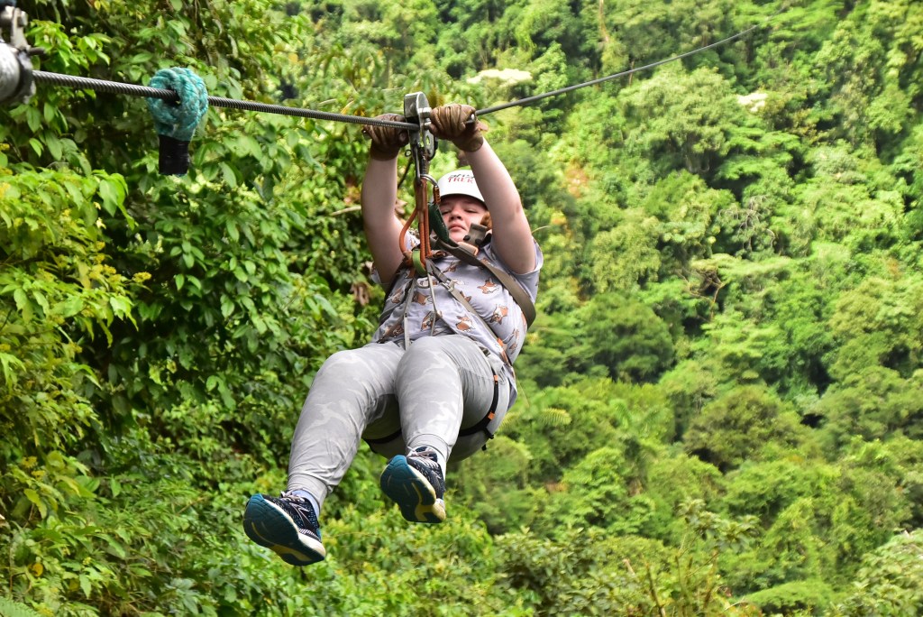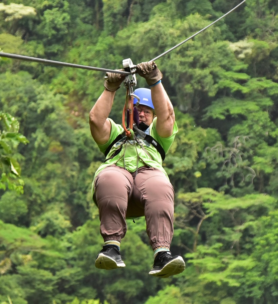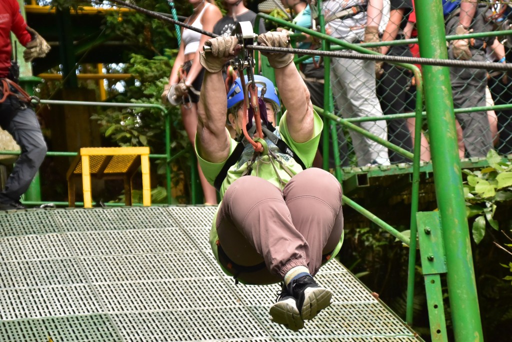 Our first activity of the day was zip lining. I have never done this before and I have to admit that I was definitely nervous. It turned out to be an amazing experience. We went on seven zip lines. Two of the lines were short, about a couple of football fields long. However, five of them were about a half mile long. They were also quite high up in the air and you really got going fast. Couple of times I didn’t slow myself down enough at the end and I really came in hot. However, the crew were well trained and they were able to get me stopped. The following pictures were taken by professionals at the site.