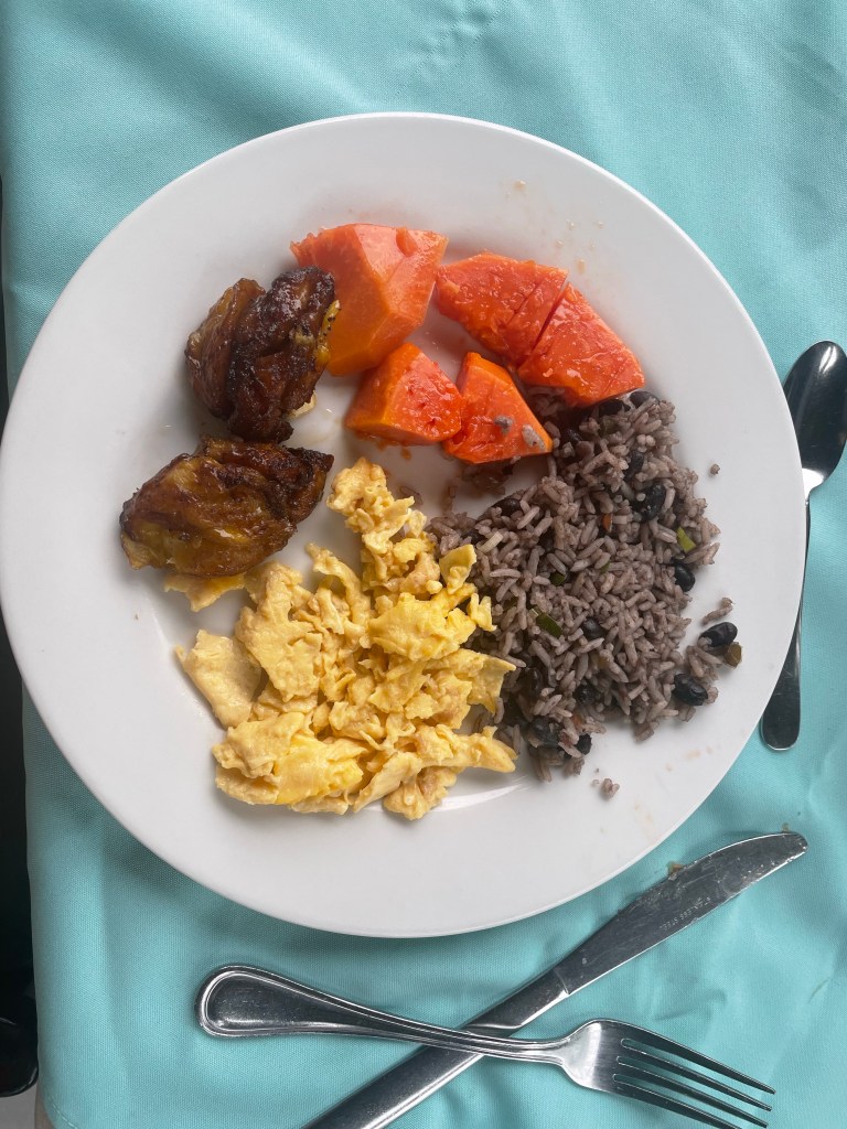 Before I start on today’s activities, here is a picture of my Costa Rican breakfast. It consists of rice, eggs, papaya and plantains. I’ve actually had it every day that I’ve been here so far.