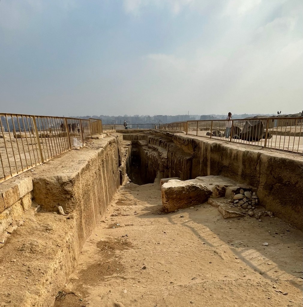 When excavating around the pyramid, they found these boats that were buried. The boats were intended to take the pharaoh to the afterlife. Here is one of those excavations.