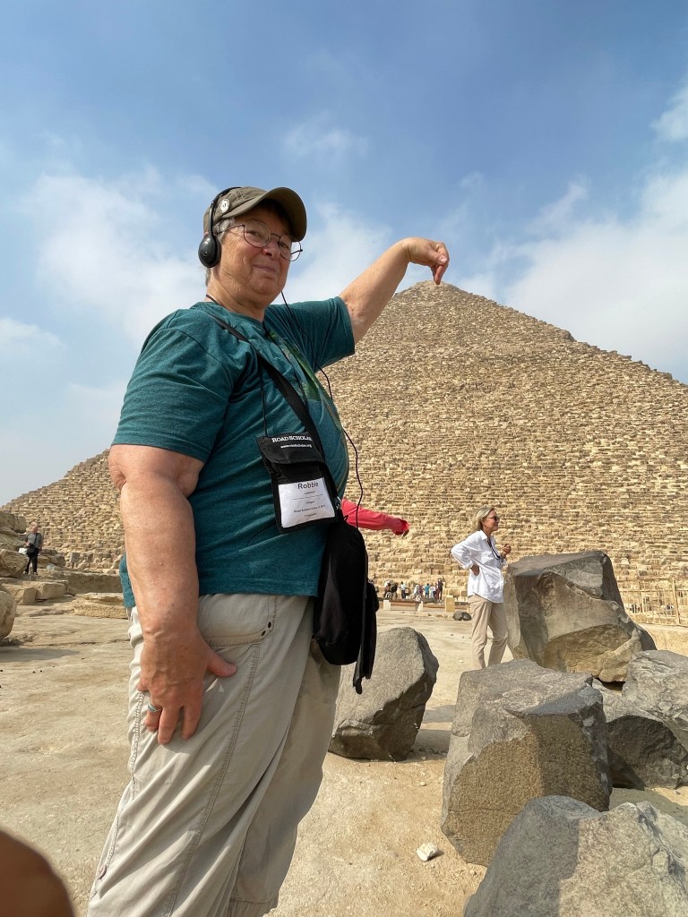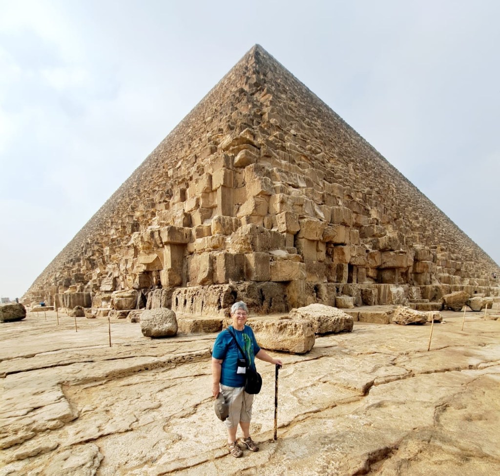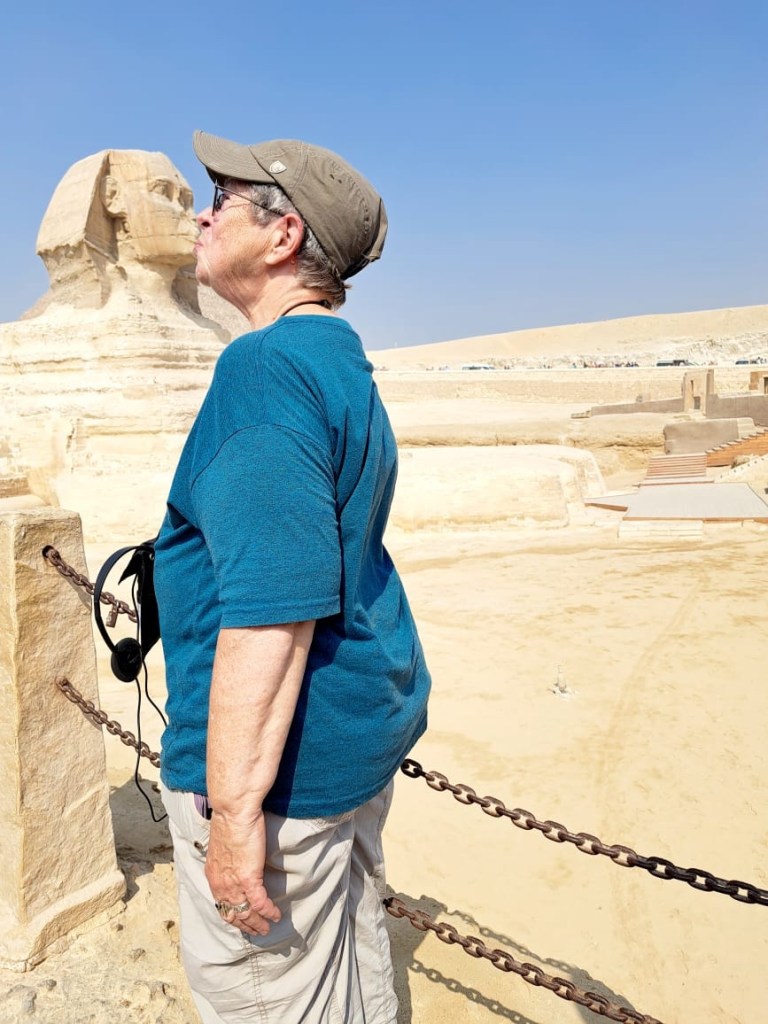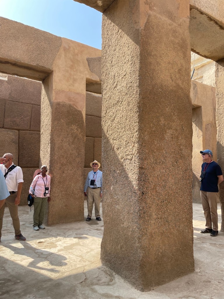 Our first day consisted of two major outings, one to the pyramids and the other to the Egyptian museum. We walked around the big pyramid, and also the Sphinx. The group took a camel ride which I had to turn down because of the arthritis in my hips. I got up onto the camel and decided that was a bad thing for me and my arthritis so I immediately got off. The group only went for about a 15 minute ride so I’m actually glad I didn’t go. When Janet and I were here in 2001 we rode around the pyramids for at least an hour on a camel. Here are the pictures from around the pyramids. The pyramids were constructed during the old kingdom dating from 2700 to 2160 BCE.