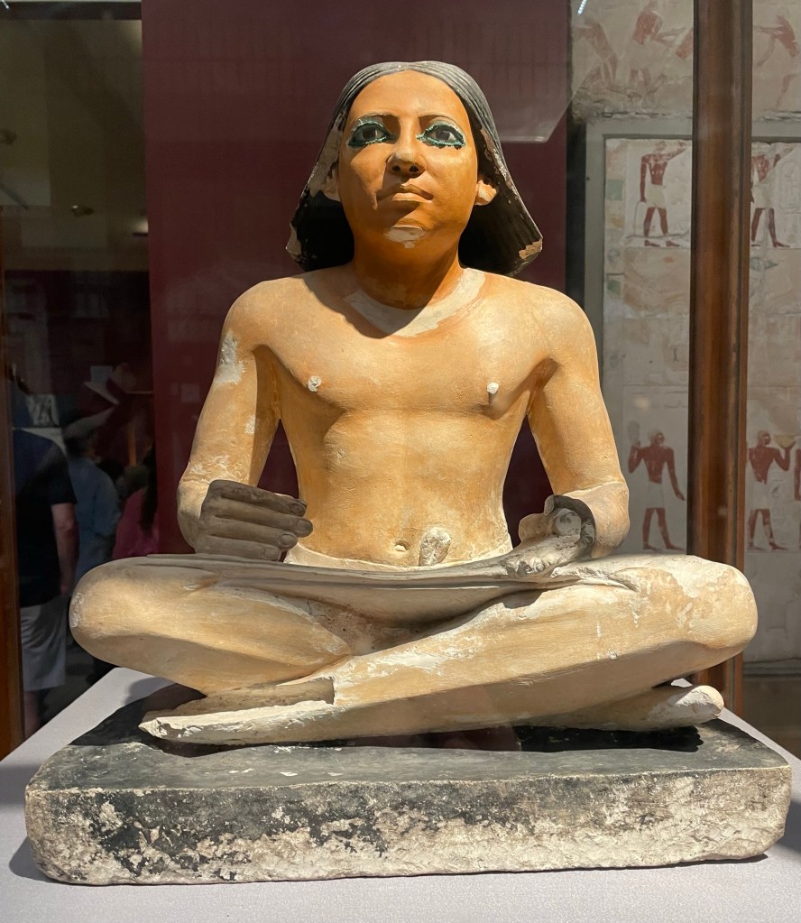 A statue of a scribe. This is a more modern statue so that the arms are no longer supported.