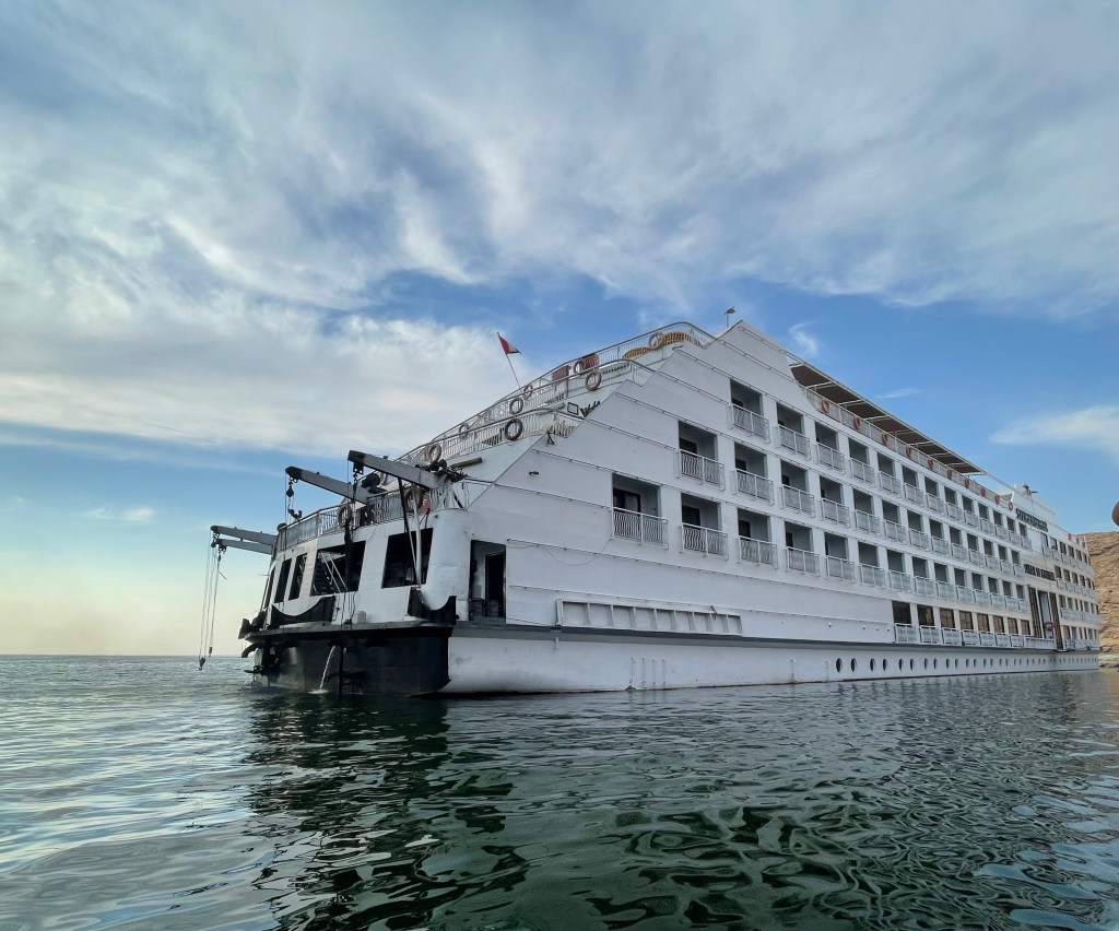 In the afternoon we took a tender to explore the temple of Amanda built 1550-1295 BCE which includes important, historical inscriptions. It is the oldest of theLake Nassar Temples. The temple was moved 2.5 km after the construction of the Aswan Dam. Here are pictures from inside the temple.