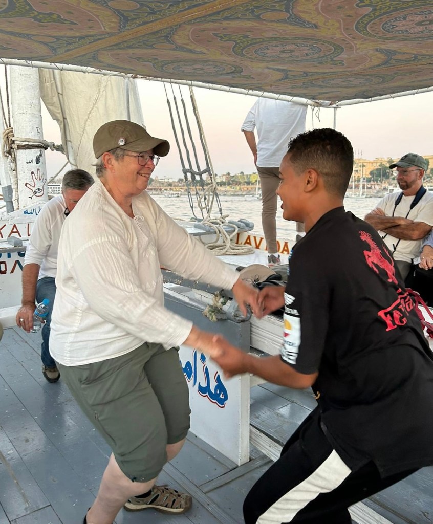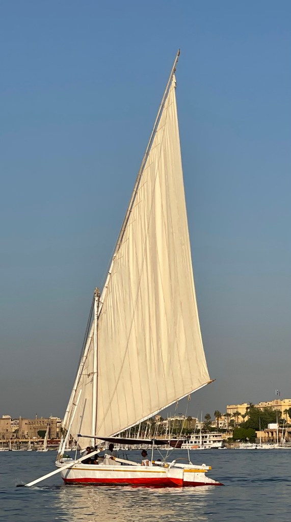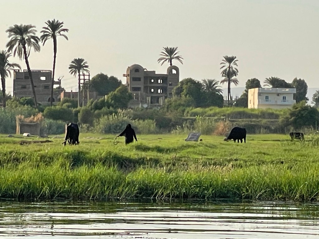 After lunch, we took a felucca ride. Unfortunately, there was no wind so the felucca was pulled by another boat. We went to an area called banana Island to visit a plantation.