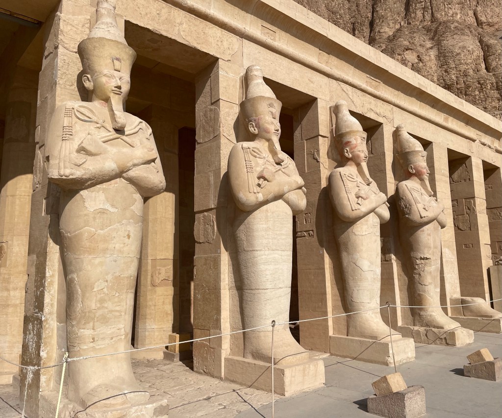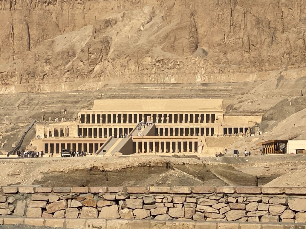 During the morning of our first day in Luxor, we visited the temple of queen Hatshepsut and the Valley of the Queens. Hatshepsut was the great royal wife of Pharaoh Thutmose II and served as the fifth pharaoh of the 18th dynasty of Egypt. She initially reigned as a regent for Thutmose III but assumed the full position of pharaoh. She reigned for 20 peaceful and prosperous years. After her reign, Thutmose III, who was incensed at her ruling in his steed, tried to erase official records of her rule.