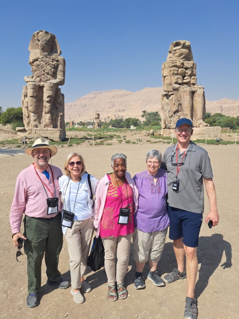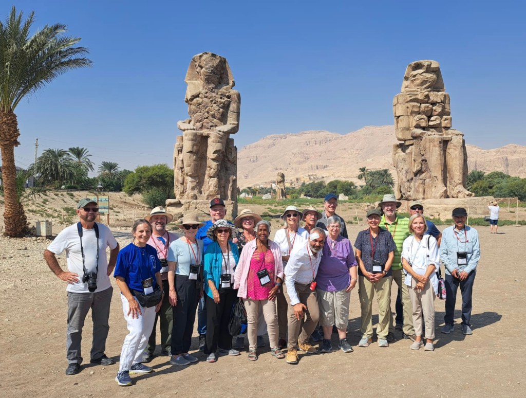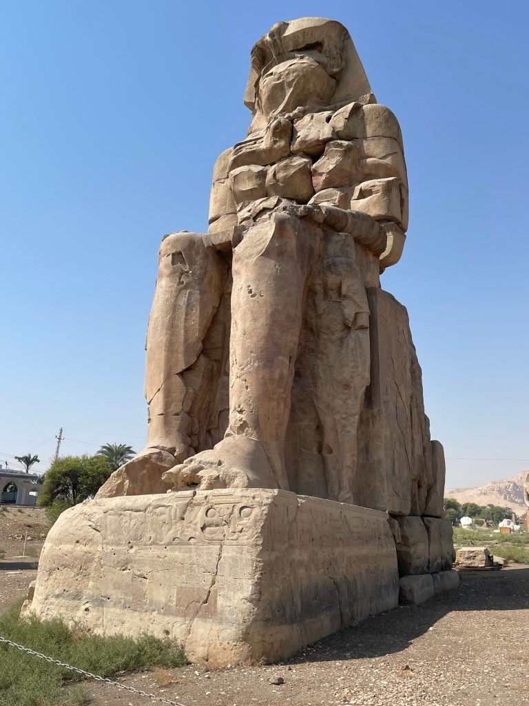 On the way home, we stopped at the famous colossi of Memnon. These massive twin statues depict Pharaoh Amenhotep III and stand in what was once the entrance to the mortuary temple of Amenhotep. Unfortunately, the temple was destroyed by an earthquake shortly after construction in 1200 BCE.
