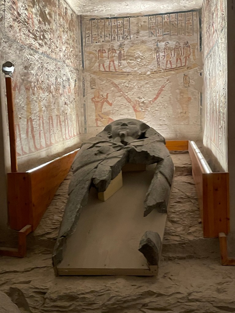 Tomb of Merenptah, 4th pharaoh of the 19th dynasty, reigned 1213-1203 BCE. Merenptah was the 13th son of Ramses II, only coming to power because all of his older brothers had died. By the time he ascended to the throne, he was around 70 years old. He is arguably best known for his victory stele featuring the first known mention of the name Israel.