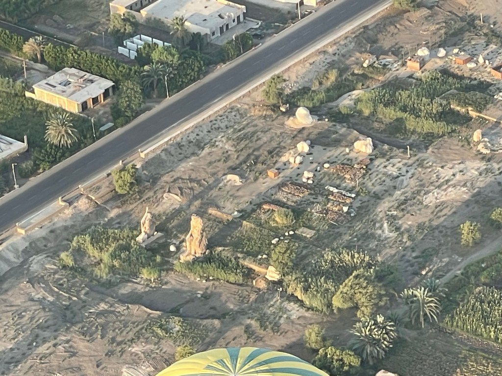 Our balloon being inflatedOur pilotTemple of Queen HatshepsutTombs of lesser officials and noblesDeb, Mark and myself Colossi of MemnonOur landing. We barely knew we touched ground.