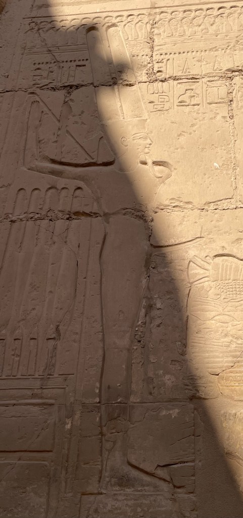 After breakfast, we explored the temple complexes of Karnak and Luxor. These temples were the religious centers of the ancient city of Thebes, which is modern day Luxor. Karnak, also known as “ipet-isut” or the most sacred of places is the largest temple complex ever built by man and represents the combined achievements of 13 centuries of builders. Luxor Temple also known as “ipet -resyt” or the southern sanctuary was the center of one of the most important religious festivals in ancient Egypt, the open festival, during which the statues of Amun-Re, Mut, and Khonsu were carried from Karnak to Luxor. First set of pictures are of the temple at Karnak.