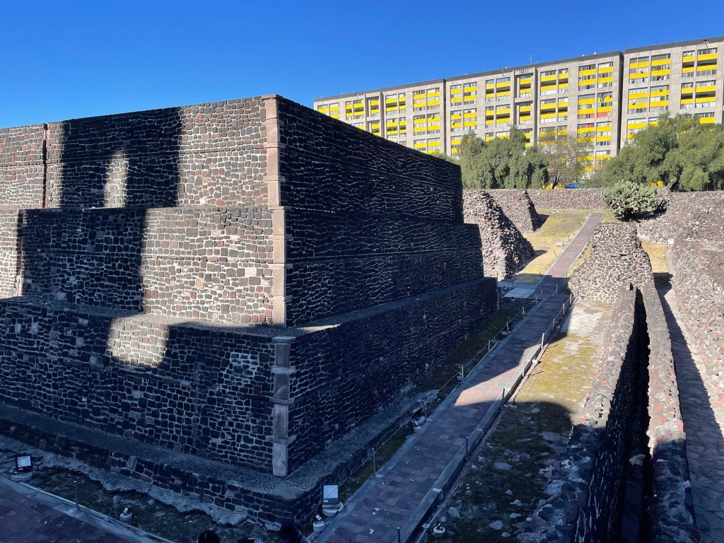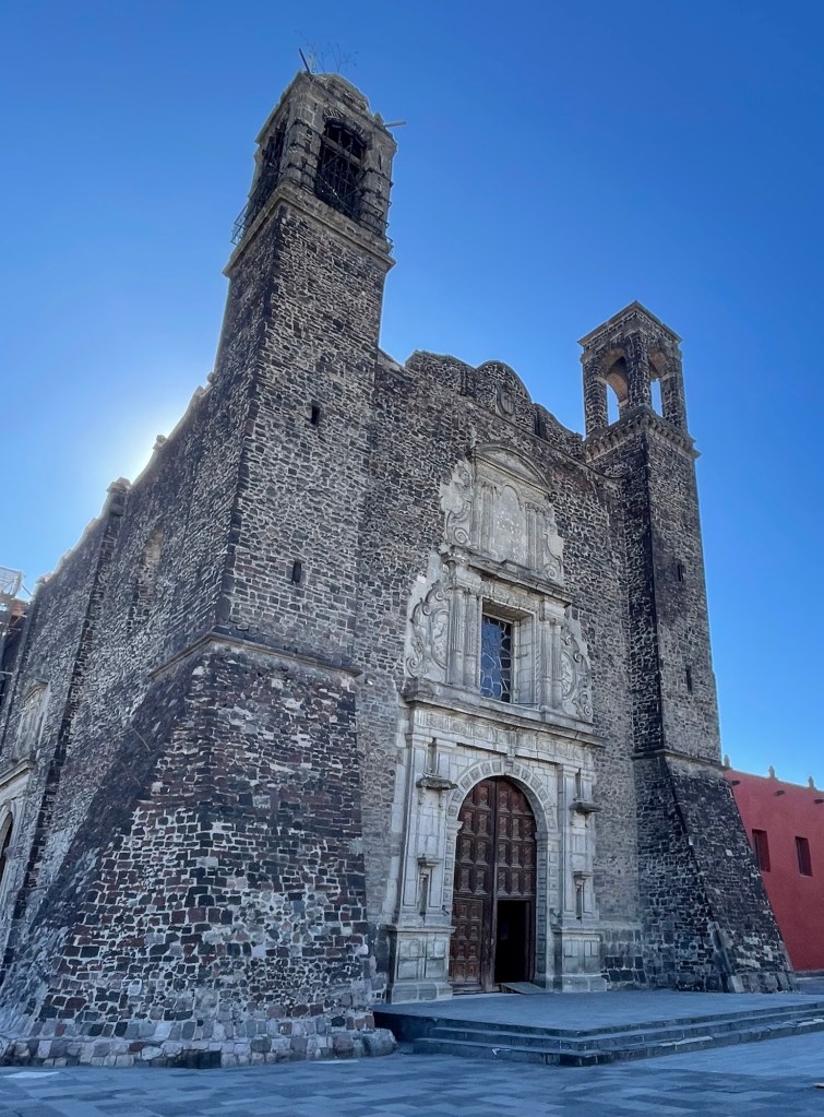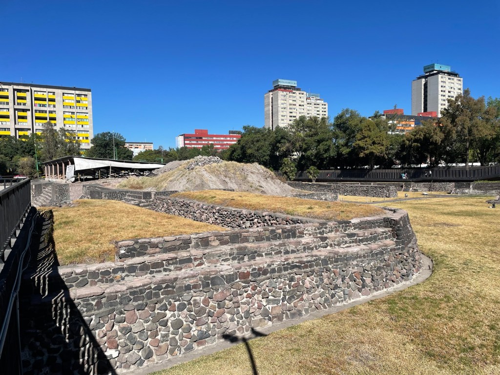 Today we took a tour to four different sites. Our first stop was the archaeological site Tlatelolco. The area is known as the square of three cultures. The first culture represented by the remains of an Aztec pyramid. The other culture is the 16th century church dedicated to St. James. The third culture is some remains of more recent colonial structures. In 1968, there was a military massacre committed against the students of the National Autonomous University of Mexico (UNAM) that currently surrounds the square.