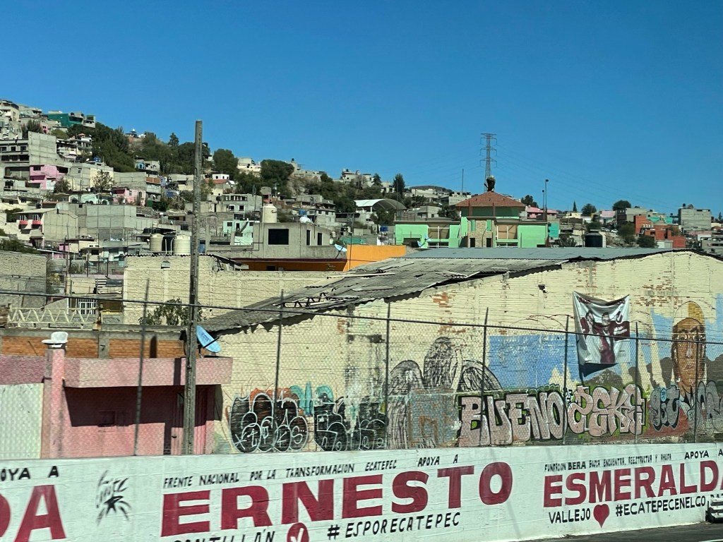 I’m going to post some pictures taken from the bus on our drive to the next site. They give you a some idea of how people live. The first picture is of the Mexican cable car. The first part of this project was inaugurated on October 4, 2016. The line is 4.8 kilometres (3.0 mi) long and runs between San Andrés de la Cañada and Vía Morelos (in Ecatepec), through five intermediate stations. It reduces traveling times between those points to 17 minutes, down from the hour-long commutes between the same points using ground transportation. The Mexicable operates 184 cars, each with a capacity 10 passengers. The predicted capacity is 3,000 passengers per hour for each line and 29,000 passengers per day, with a fare of 9 pesos as of July 2020.