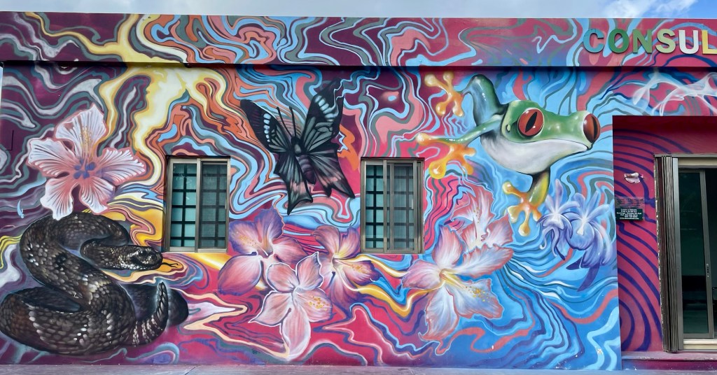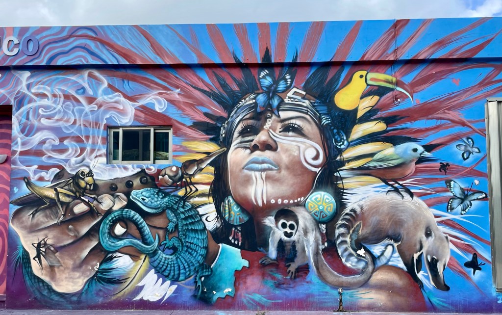 When we were done at the beach, we decided to actually go into the little town of Akumal. The town is on the other side of the main highway away from the beach. Very little touristy stuff. I mainly walked around, taking pictures, and Berni was looking to buy sunglasses. The surprising thing is that there were beautiful murals all over the place. So here are the fruits of my labor, bunches of pictures of murals plus interesting sites in the little town. This is very typical of a Mexican town, except for the murals. The murals were a complete surprise. This is why I like traveling not with a tour because you stumble upon these priceless little finds.