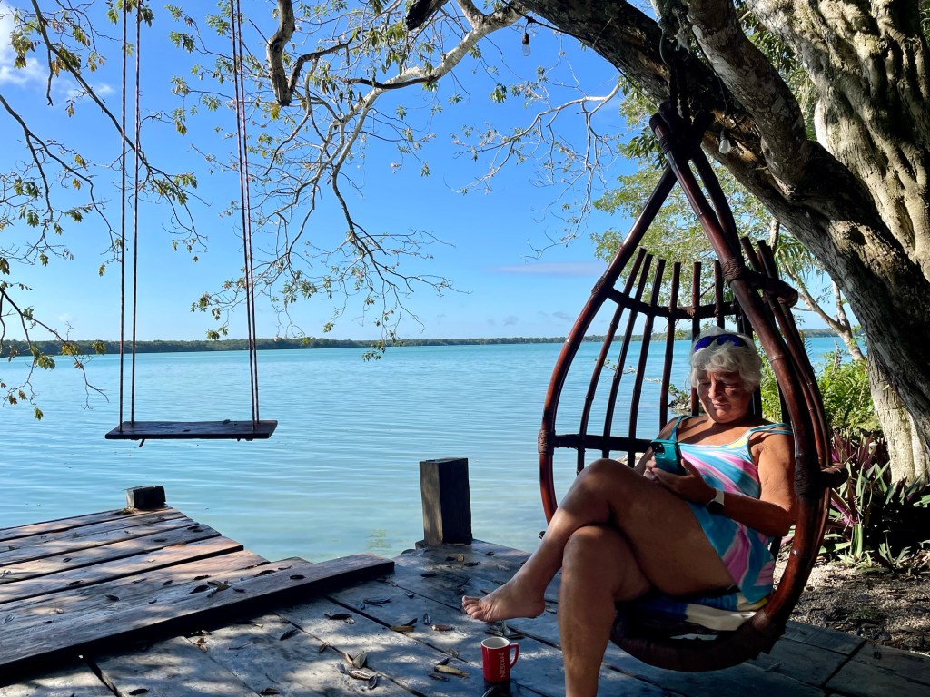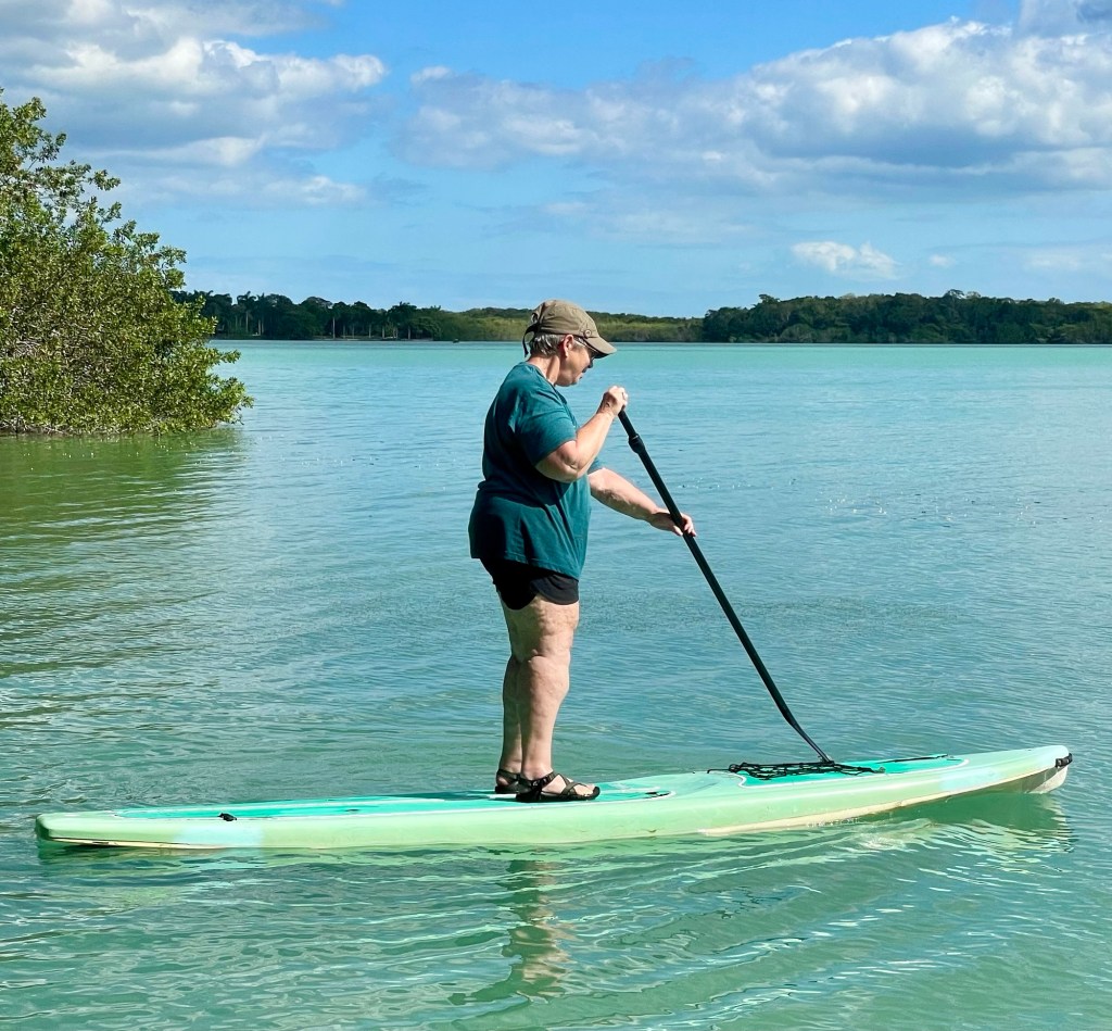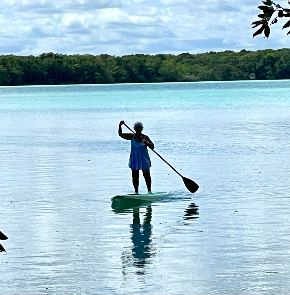 We spent our whole day at our little casita. We had two paddle boards for our use. Berni spent quite a bit of time on hers having never really done it before. She did great. I actually stood up on the paddleboard and stayed standing for quite some time for me. I felt this was a great accomplishment, I even sent two photos of me on the paddleboard to my personal trainer. My goal working with him was to build core strength and balance so I could ride on a paddleboard. I still have a long way to go to be able to stay up on it for a longer period of time. I didn’t fall off, but I had to stop because I started getting tired. Here are some photos of our absolutely delightful day in paradise.