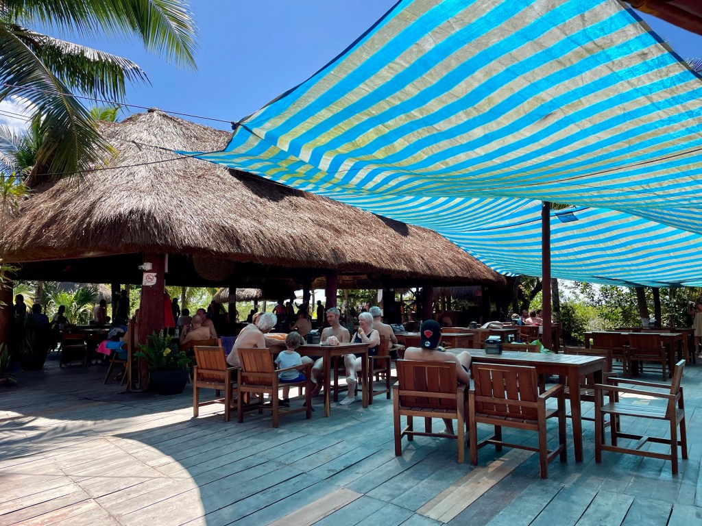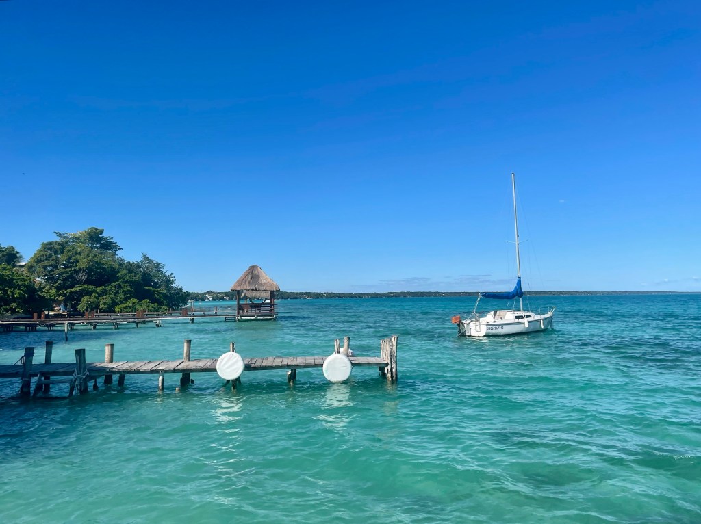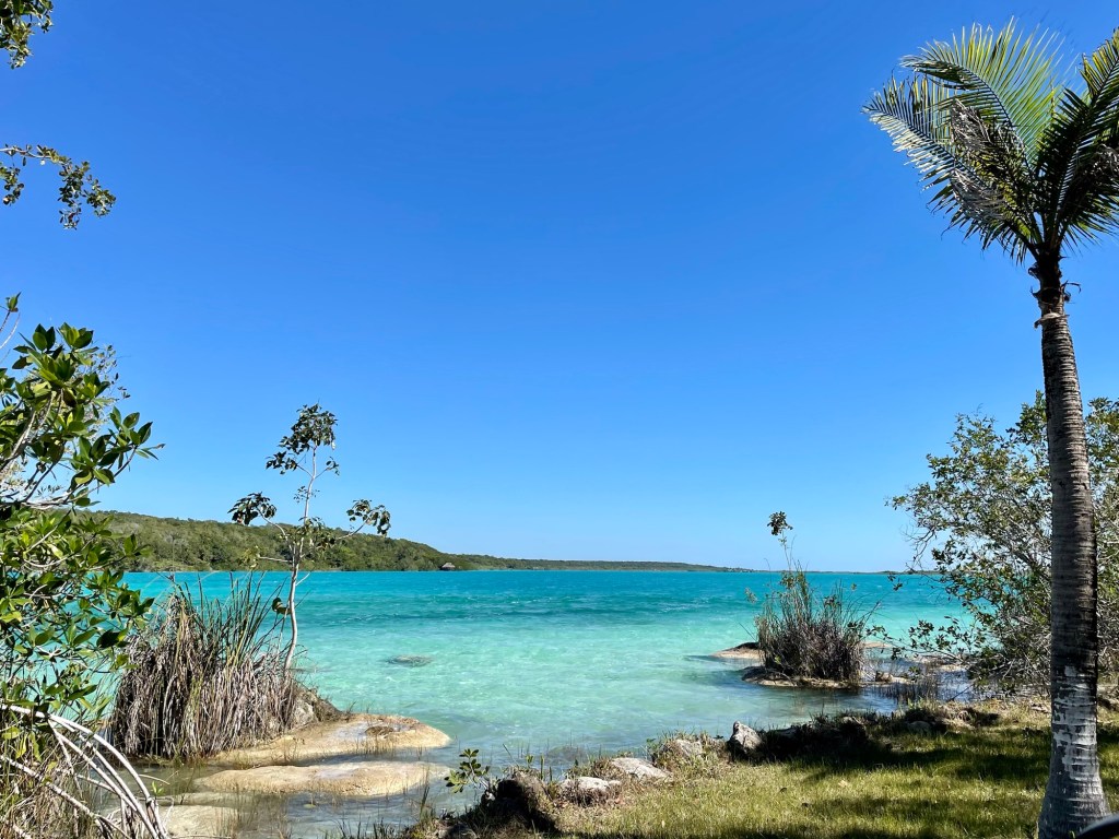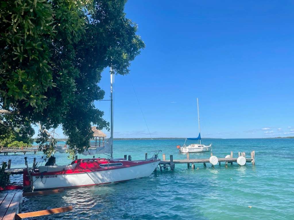 Our Airbnb in Bacalar has a porch and then a beautiful deck upstairs. We have been eating breakfast and lunch on the deck.
