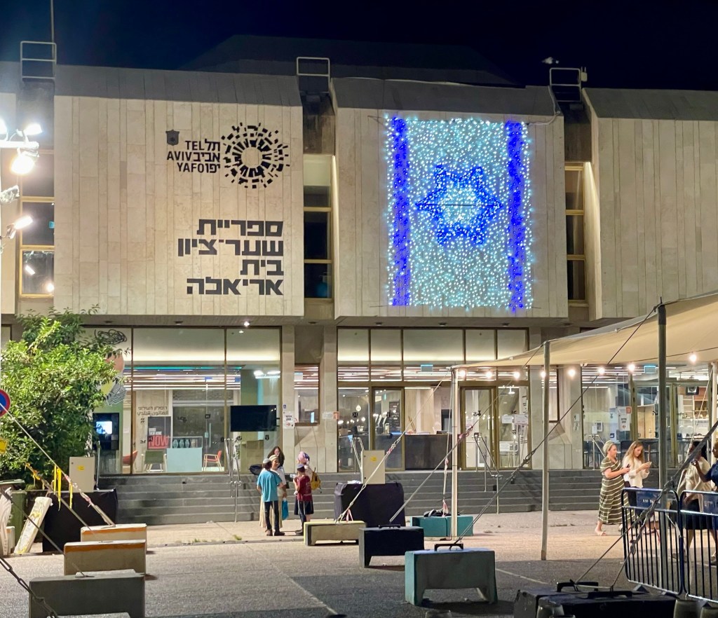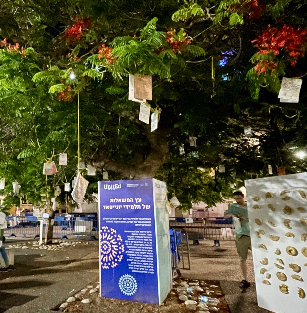 After these talks, we went out to eat at an incredible Moroccan restaurant that was a fusion blend of Moroccan and Israeli food. One of the best meals I’ve ever had in Israel. After dinner, we went to hostage Square. Every Saturday evening there is a huge demonstration. There were quite a number of people in the square. Some were praying, others just sitting. Here are some pictures from the Square. First there is a picture of our server at the Moroccan restaurant.