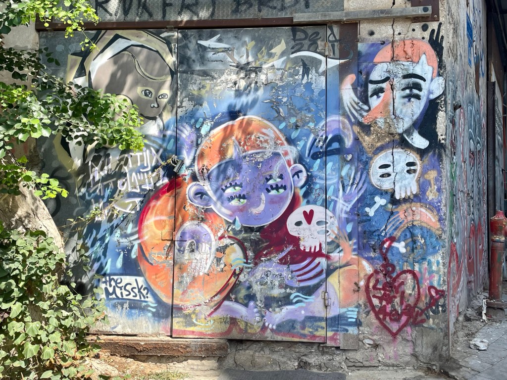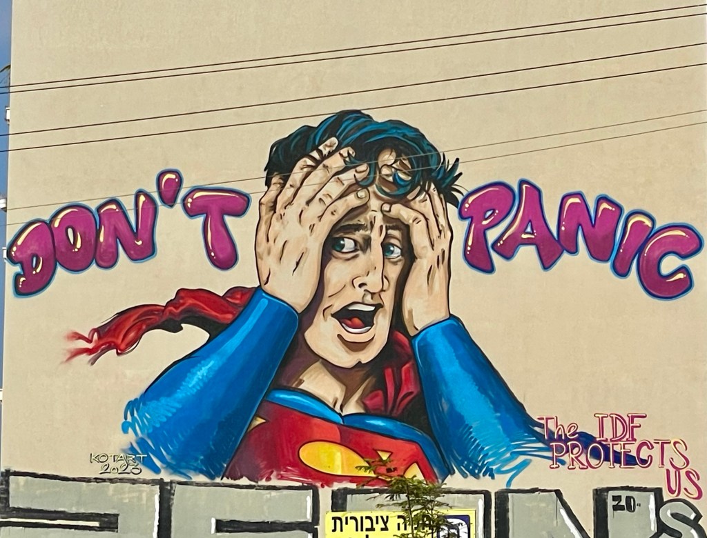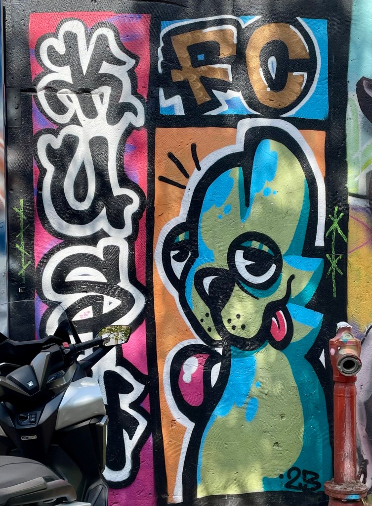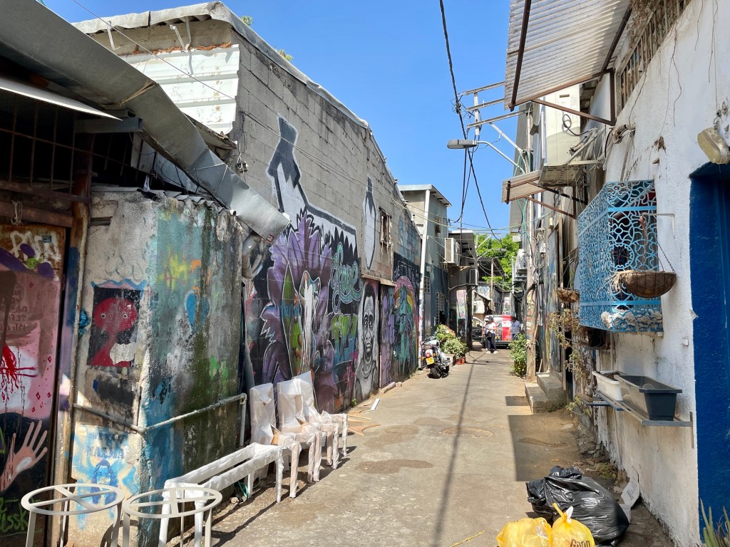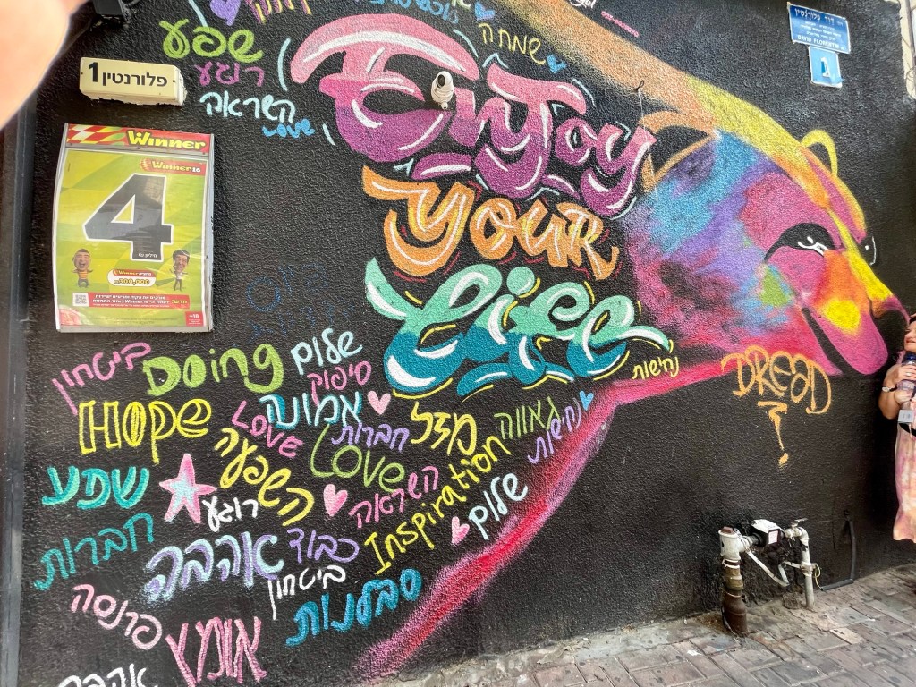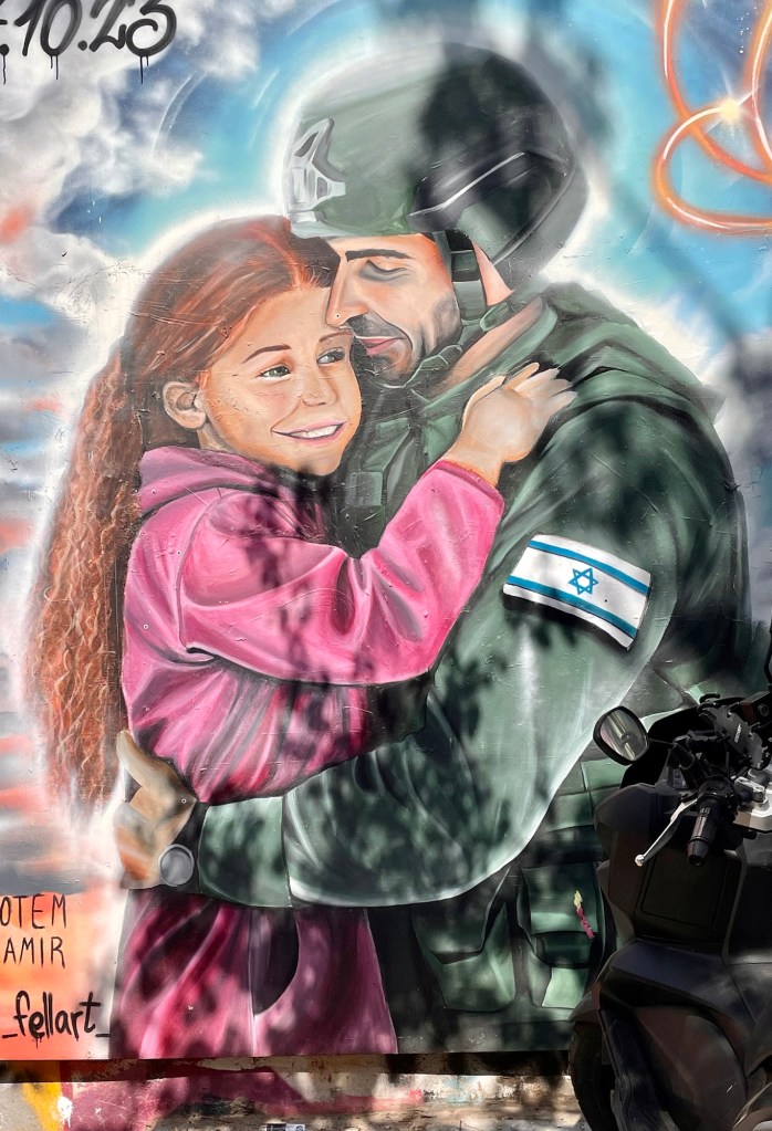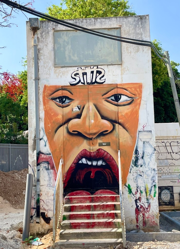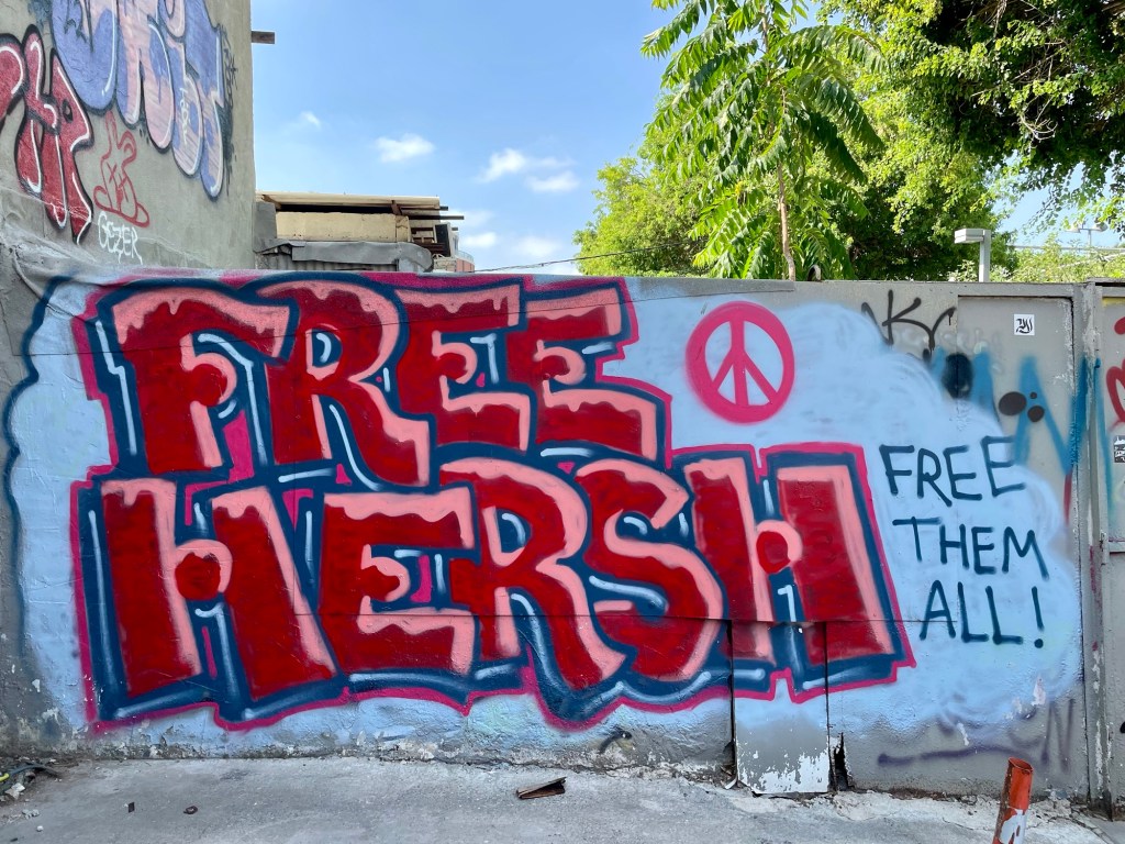 Florentin was initially populated primarily by poor Sephardic Jewish immigrants from North Africa, Bulgaria, Turkey, Greece, and Bukhara. As with much of south Tel Aviv, for many decades it suffered from urban decay and poverty. By the 1960s, the area had declined from a working-class area to a slum, as the original residents moved out. However, since the 1990s and 2000s, the area has attracted many younger residents and artists who were first attracted by its lower rents, and the neighborhood is now also associated with a bohemian lifestyle. Florentin now has numerous artists’ workshops, cafes, restaurants, markets, and graffiti tours. The area is also an industrial zone and a garment district, where both Jewish and Arab wholesalers buy and sell clothing and furniture. On our previous tour of Israel I visited this area. This time we were primarily looking at graffiti after October 7. Here are the pictures I took.