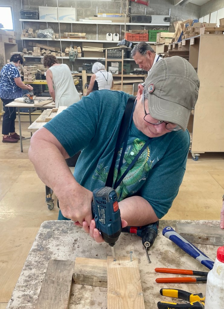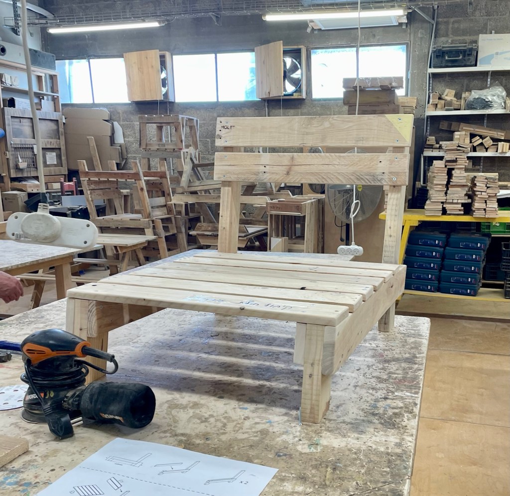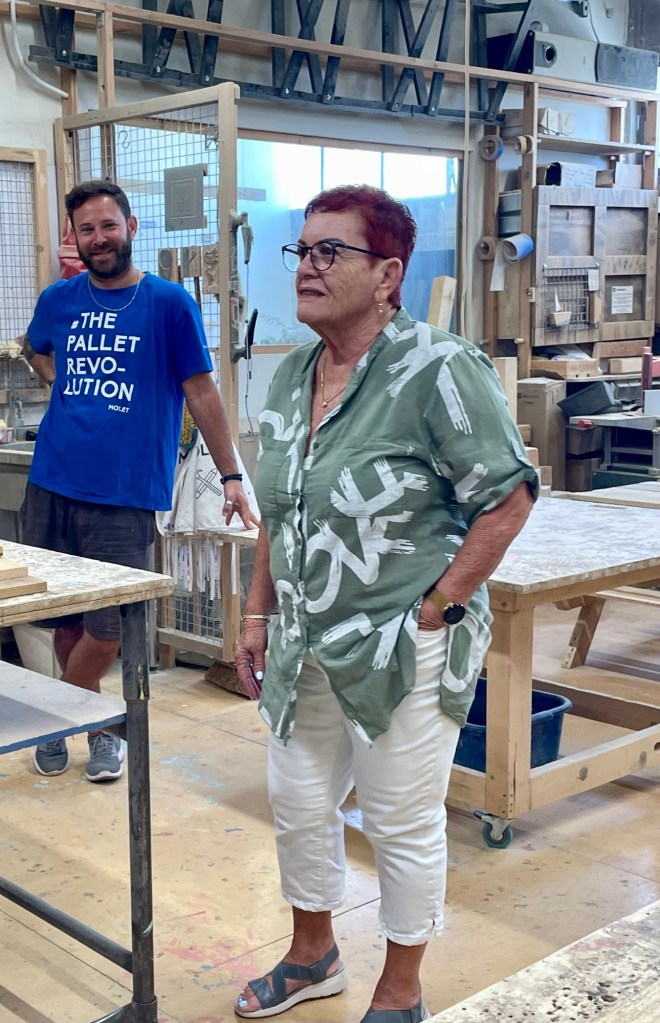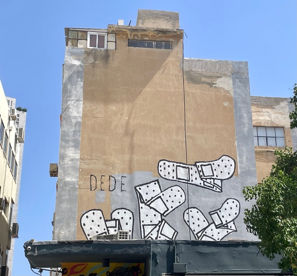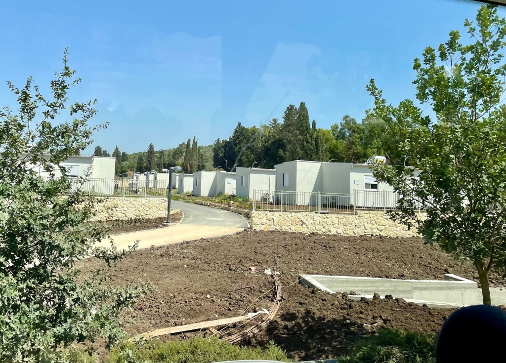 After seeing the graffiti, we went to Molat House, which is a group of creative professionals that are currently building furniture for evacuees. Before actually building some of the furniture, we got to hear from another survivor of October 7. Unfortunately, I did not get her name. She is from Kibbutz Kisufim, founded in 1951 mainly by people from NY who had to learn how to be farmers. They always had trouble with Gazans stealing, laying land mines. The Kibbutz was attacked on Oct. 7. 127 people were killed. She stayed in her safe room for over 24 hours before being rescued. She was then evacuated. She was only able to grab a toothbrush, her passport, some underwear and money. She had the clothes on her back. When the bus was leaving kibbutz, it was shot at. She has been living as an evacuee for 8 months. She returned once to see that her home was trashed. She will be resettled next month in another kibbutz and doesn’t feel safe to go back to her home.