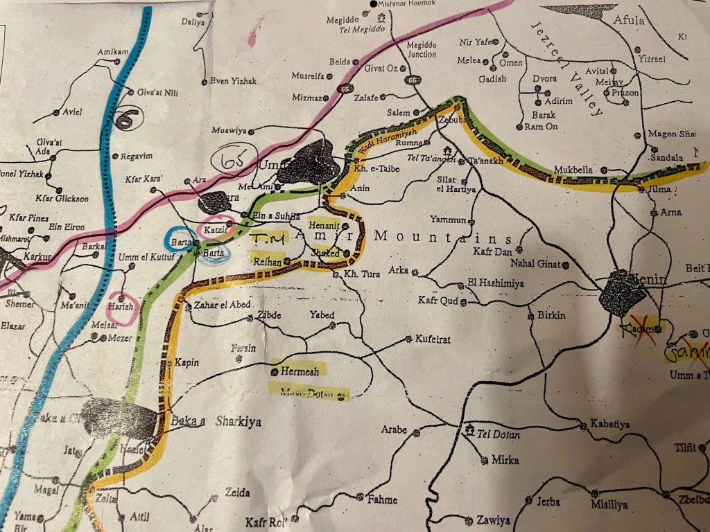 Lydia then took us to an area in the Amir mountain rage offering breathtaking views of the divided Arab village of Barta’a. In 1949 when they drew up the line dividing Israel and Jordan, they didn’t bother to actually look at the reality on the ground. Instead, they relied on contours and wound up drawing the green line right through the middle of an Arab village. This means that some of the residents became Israelis and others got Jordanian citizenship. There were even some men who had two wives where one wife lived on one side of the green line and the other wife and her children lived on the other side of the green line. To make things more complicated, when Israel built the wall, they didn’t follow the green line. There are places where the wall is built on the West Bank side of the green line. This creates a no man’s land where people living there are not Israeli, but they do not have any services that are provided by the Palestinian authority.