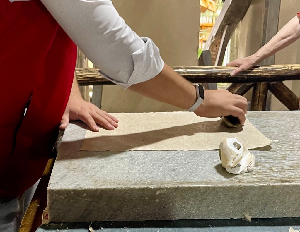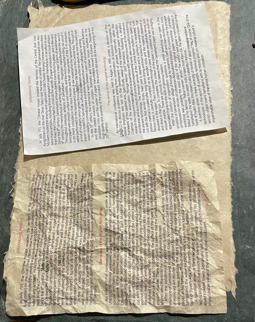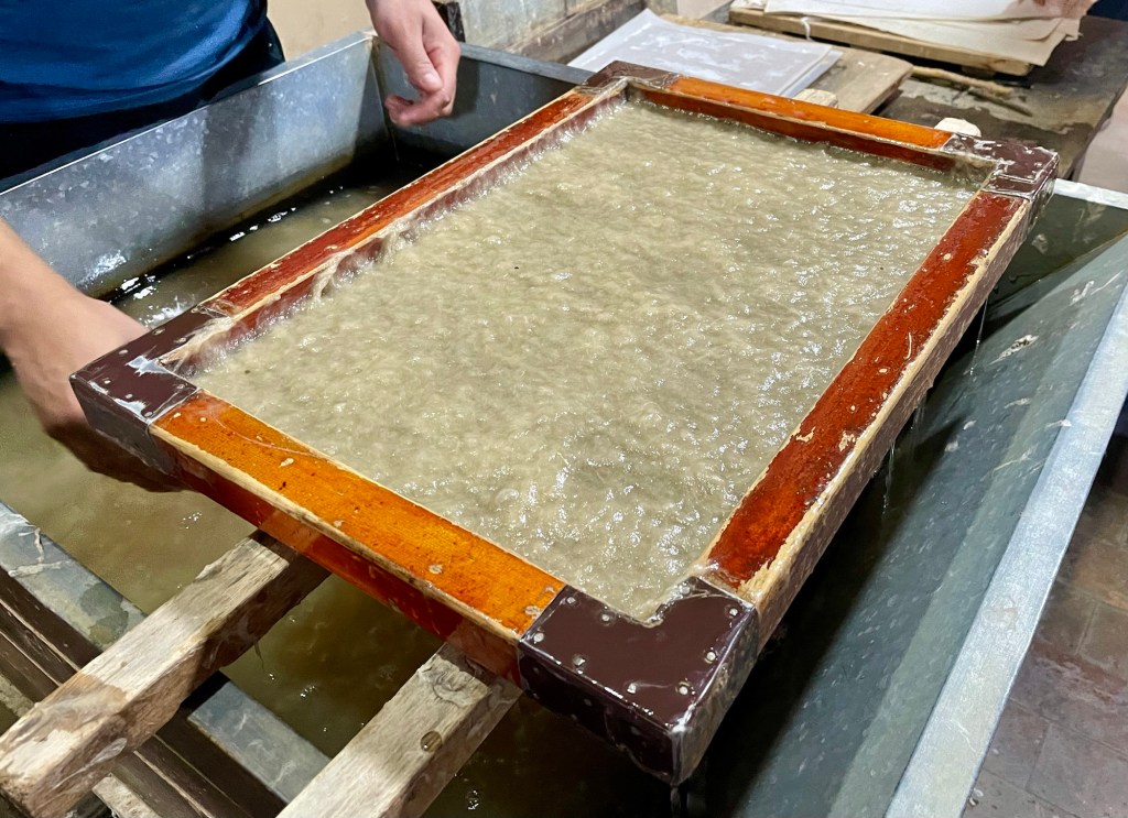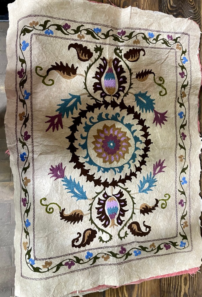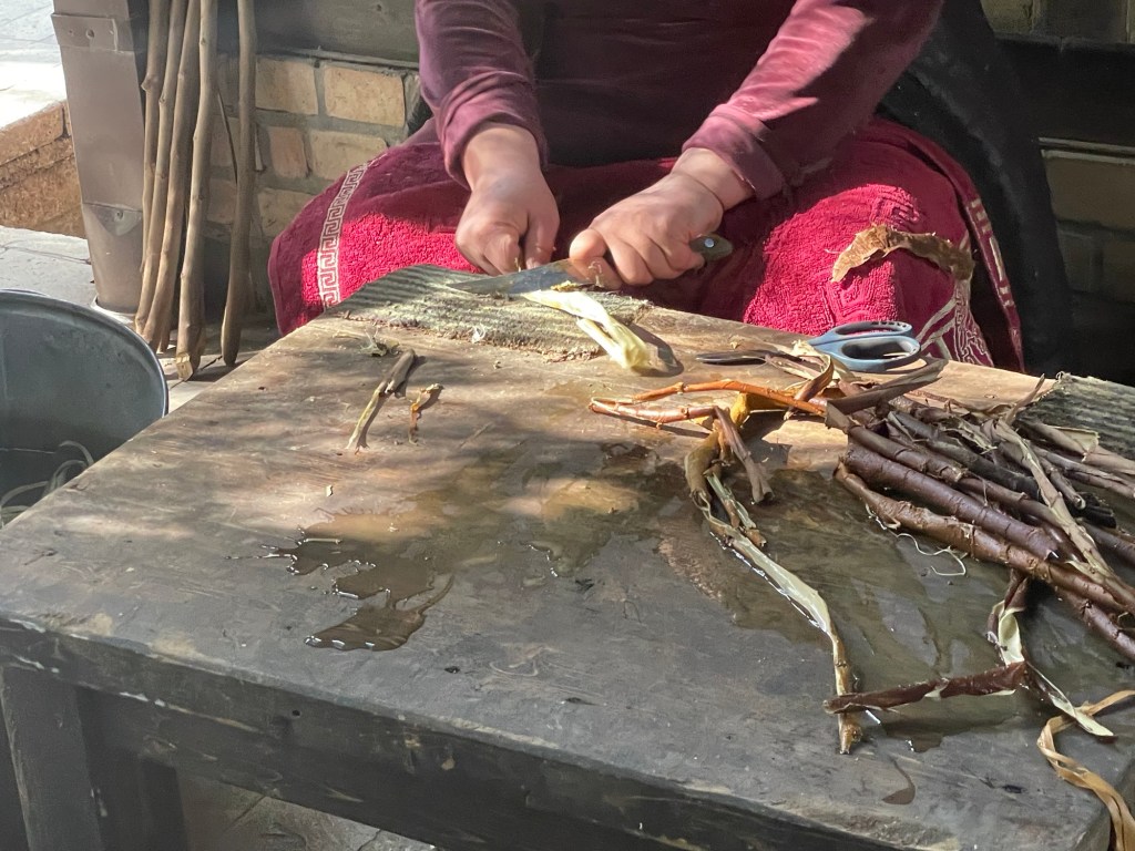 Our first activity was to learn how silk paper is made. Mulberry trees are very common in the Stans. The Mulberry tree is also the home of the silkworm which eats the leaves of the tree and of course is where silk comes from. The small branches of the tree, however, are used to make paper. It’s a fascinating process and the paper that is made from this tree can last for 1500 years.