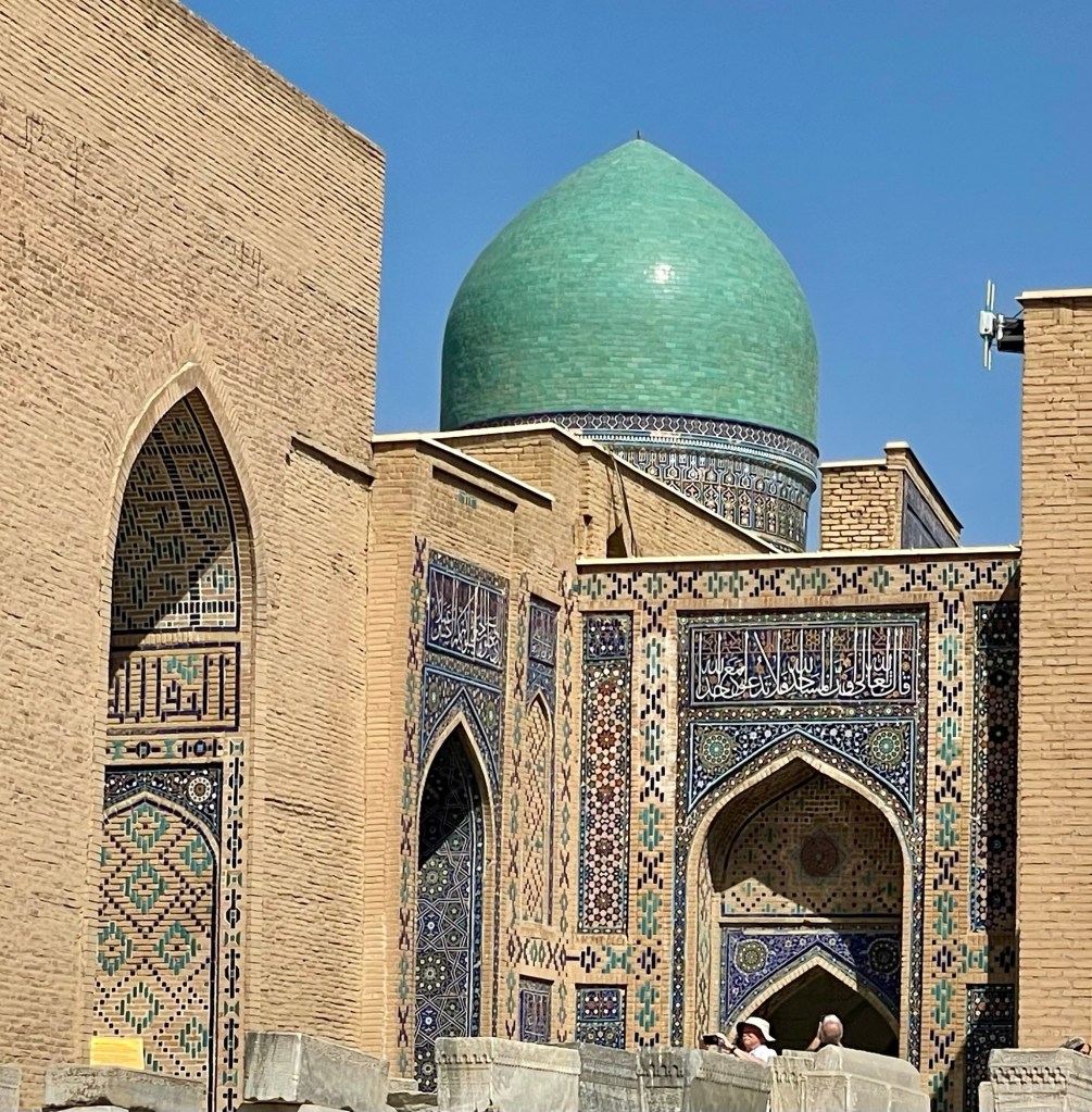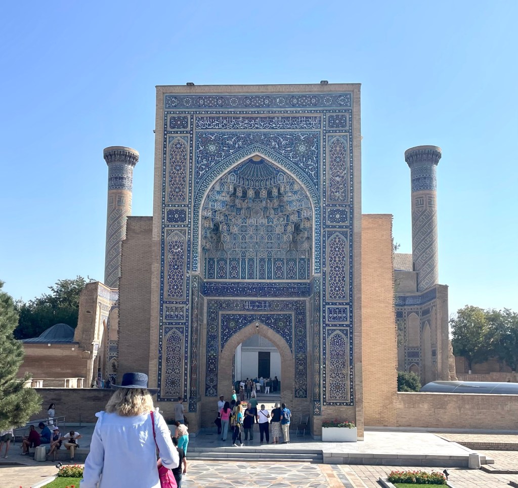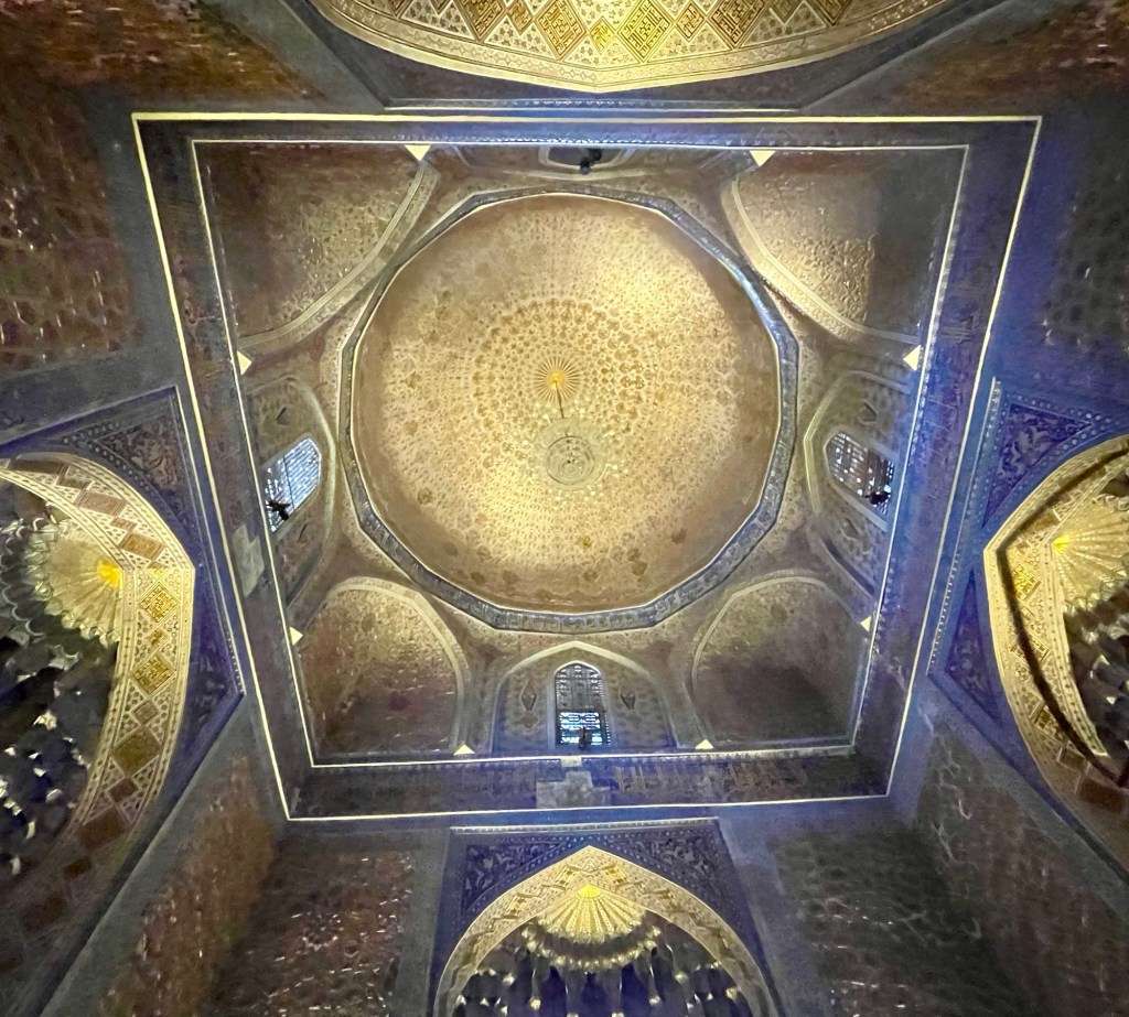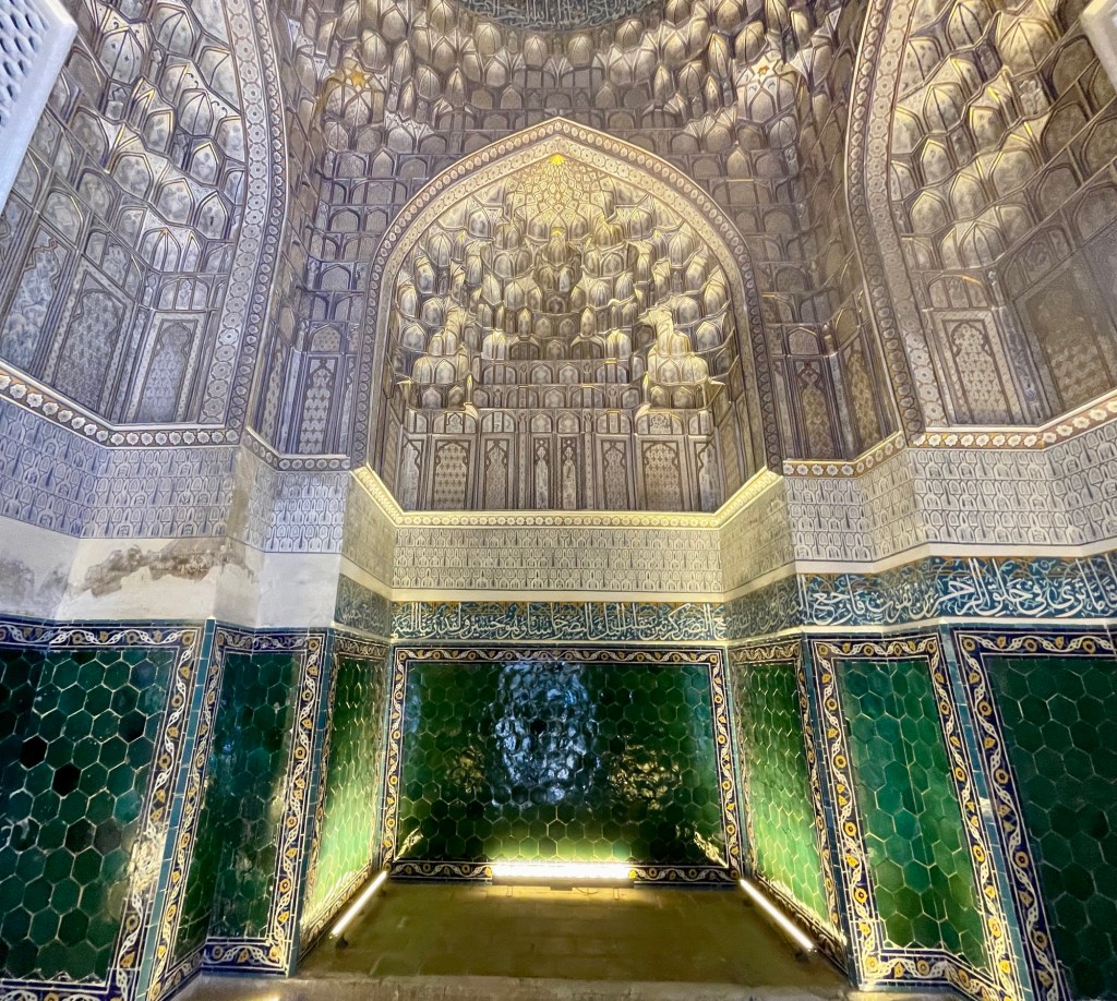 Our next visit was to the Mirzo Ulugbek observatory. Ulugbek was the grandson of the famous ruler Amir Timur who I will talk about later. Ulugbek was notable for his work in astronomy-related mathematics, such as trigonometry and circle geometry, as well as his general interests in the arts and intellectual activities. It is thought that he spoke 5 languages in addition to a small amount of Chinese. During his rule (first as a governor) the Timurid Empire achieved the cultural peak of the Timurid renaissance through his attention and patronage. Samarkand was captured and given to Ulugbek by his father. He built the observatory in Samarkand between 1424 and 1429. It was considered by scholars to have been one of the finest observatories in the Islamic world at the time and the largest in central Asia. Ulugbeh was subsequently recognized as the most important observational astronomer from the 15th century by many scholars. However, Ulugbek’s scientific expertise was not matched by his skills in governance. During his short reign, he failed to establish his power and authority. As a result, other rulers, including his family, took advantage of his lack of control, and he was subsequently overthrown and assassinated.