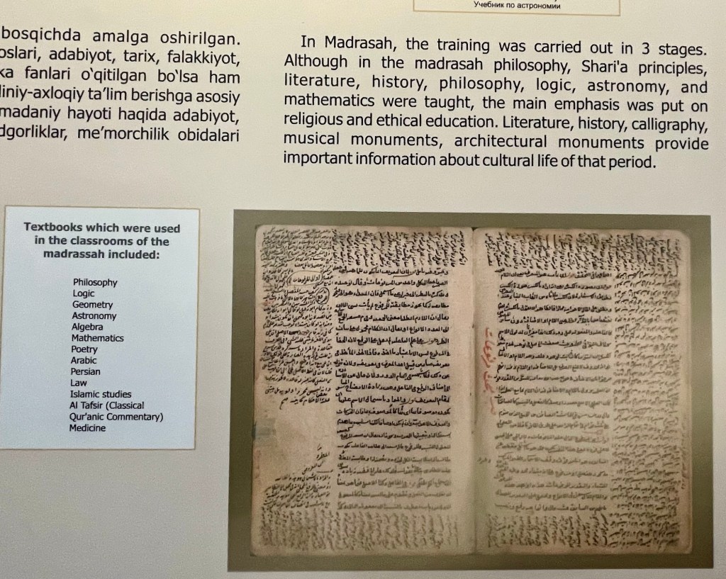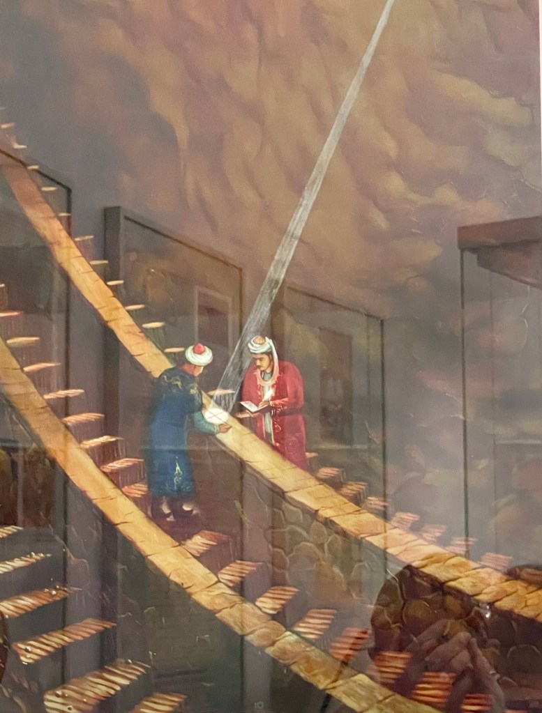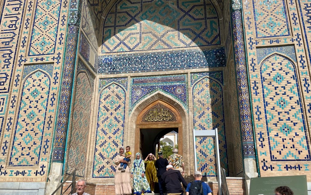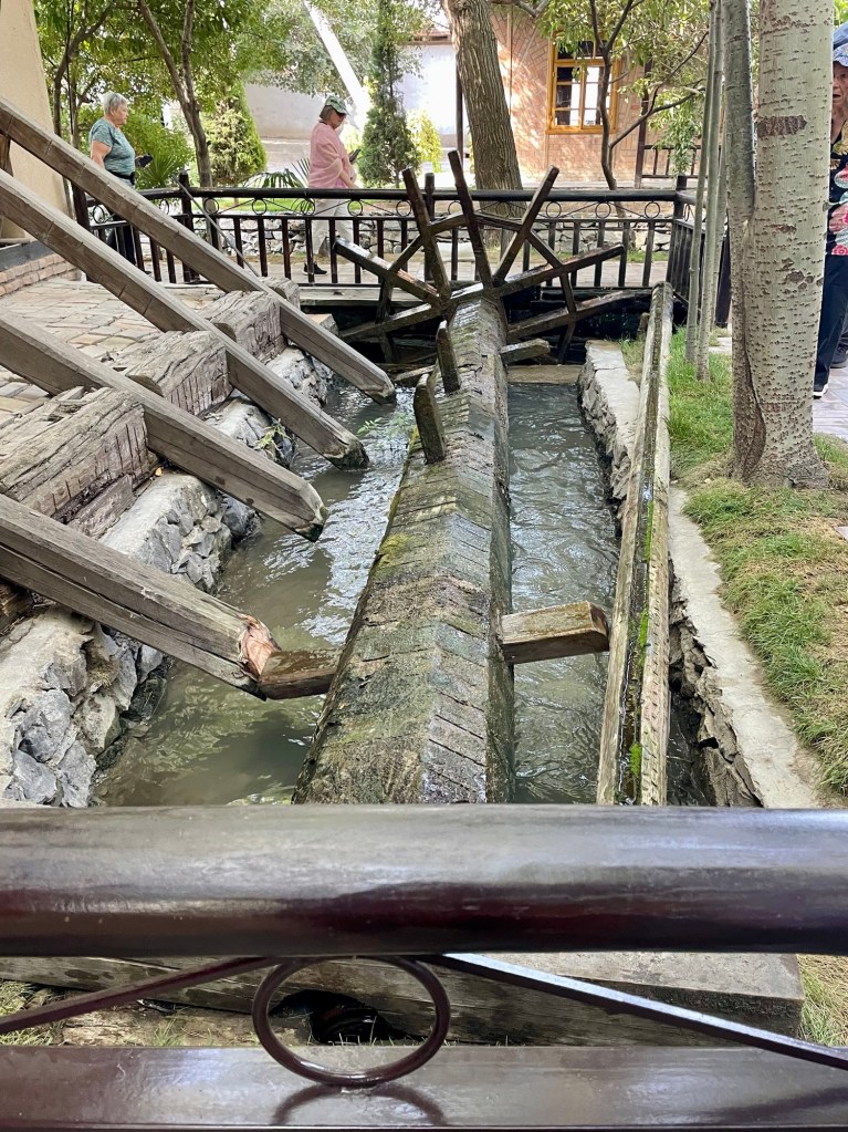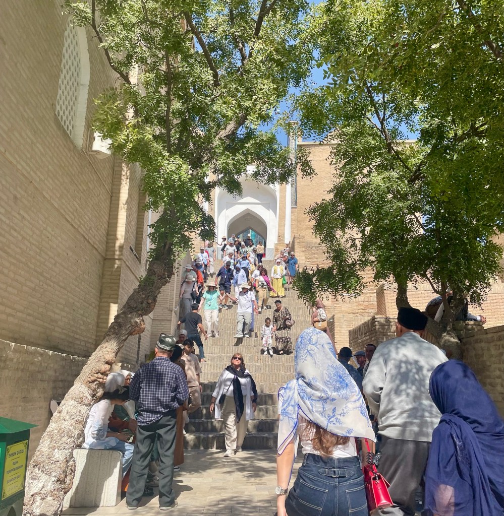Our next visit was to the Mirzo Ulugbek observatory. Ulugbek was the grandson of the famous ruler Amir Timur who I will talk about later. Ulugbek was notable for his work in astronomy-related mathematics, such as trigonometry and circle geometry, as well as his general interests in the arts and intellectual activities. It is thought that he spoke 5 languages in addition to a small amount of Chinese. During his rule (first as a governor) the Timurid Empire achieved the cultural peak of the Timurid renaissance through his attention and patronage. Samarkand was captured and given to Ulugbek by his father. He built the observatory in Samarkand between 1424 and 1429. It was considered by scholars to have been one of the finest observatories in the Islamic world at the time and the largest in central Asia. Ulugbeh was subsequently recognized as the most important observational astronomer from the 15th century by many scholars. However, Ulugbek’s scientific expertise was not matched by his skills in governance. During his short reign, he failed to establish his power and authority. As a result, other rulers, including his family, took advantage of his lack of control, and he was subsequently overthrown and assassinated.