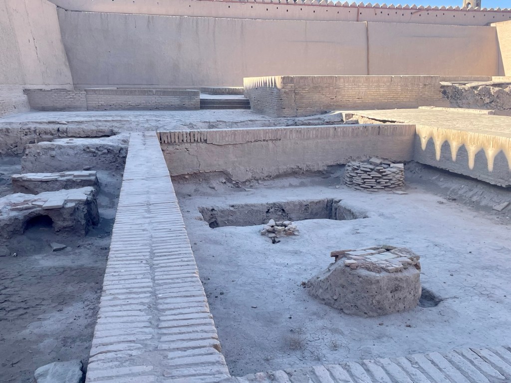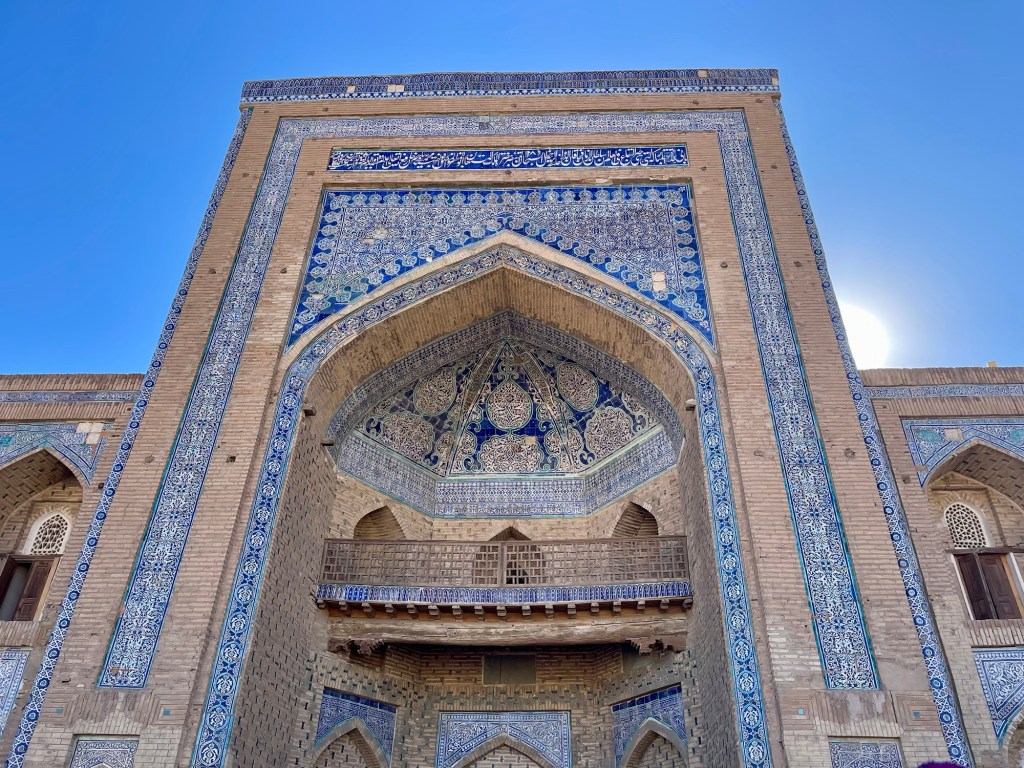 The Kunya Ark was originally built in the 12th century as the khan’s fortress and residence, and encompass numerous small courtyards, surrounded by administrative buildings, sleeping quarters, kitchens, guard house, stables, parade area, and weapon stronghold. Much of it was lost when Persia invaded the Khivan Khanate in the 18th century, but what remains, including the mosque, harem and throne room are beautifully decorated with ceramic tiles and majolica (a form of pottery).