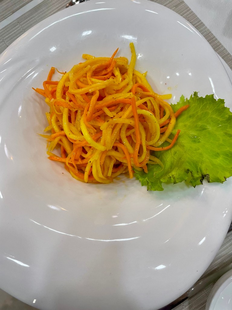 The main course was some meat and noodles and we did have a nice squash soup. I really enjoy our first course of salads, but I am really getting tired of the main entrées. We were entertained during dinner. The group seemed to be a family because the two women look like sisters and they had this young boy perform also.