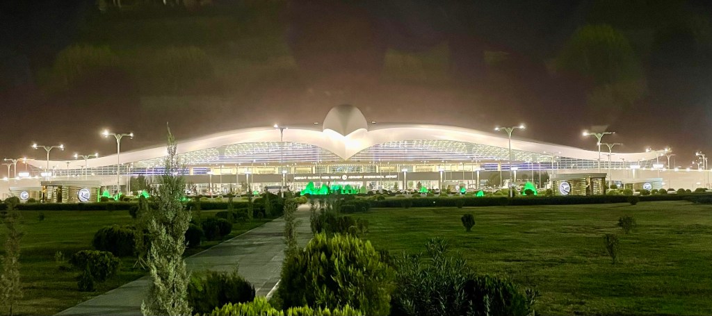 We took a night flight from Daşoguz to Ashgabat, the capital. It was immediately obvious that we have entered into an alternative universe. They were all of these tall, perfectly white apartment buildings. All the cars were white Toyotas. Again, I will talk about this in the next blog. Here is the picture of the airport in Ashgabat.