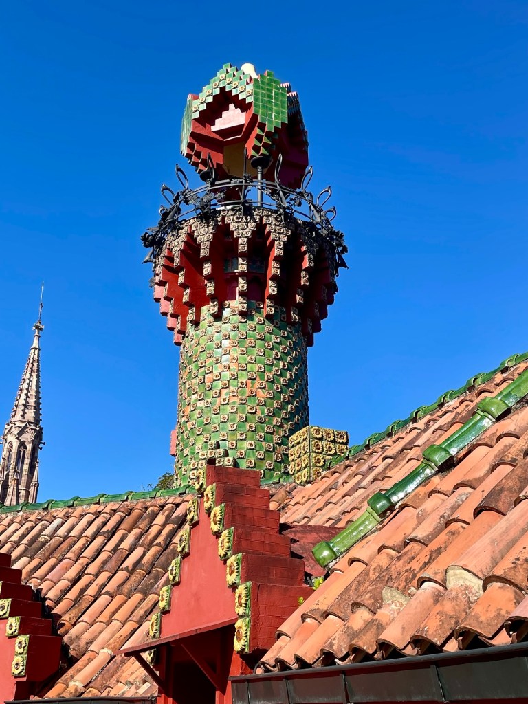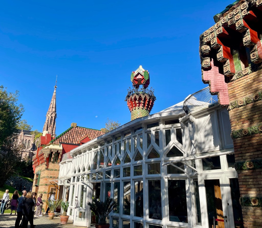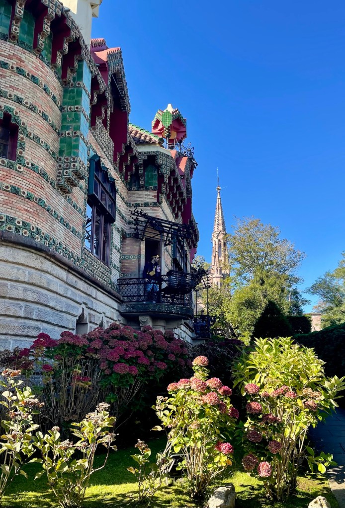 On the way, we made a stop at the Capricho de Gaudi (whim of Gaudi). The house was designed in 1885. It is a three story structure with a bedazzling combination of arabesque and Neo-Gothic elements and of course, the motifs that are a hallmark of all Gaudi creations.